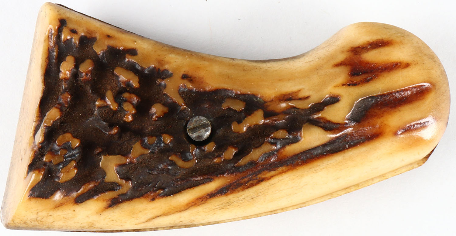 Stag pistol grips, with screw, some age soiling. Grade: Very Good ++ - Value: 20 to 80