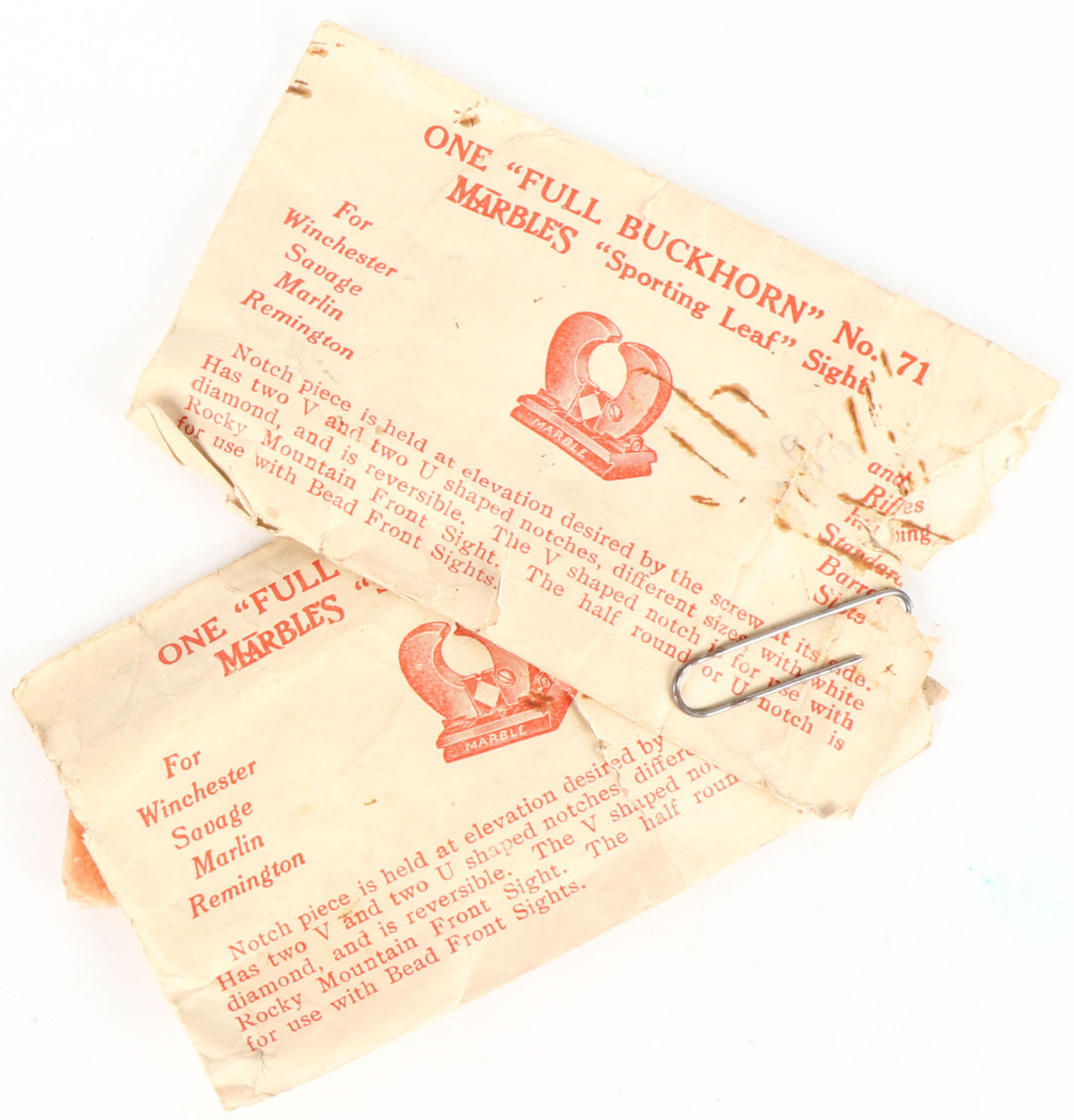 Lot of 2 Marbles No. 71 Full Blackhorn Sporting Leaf sight, in original packaging. Grade: Excellent ++ - Value: 50 to 150