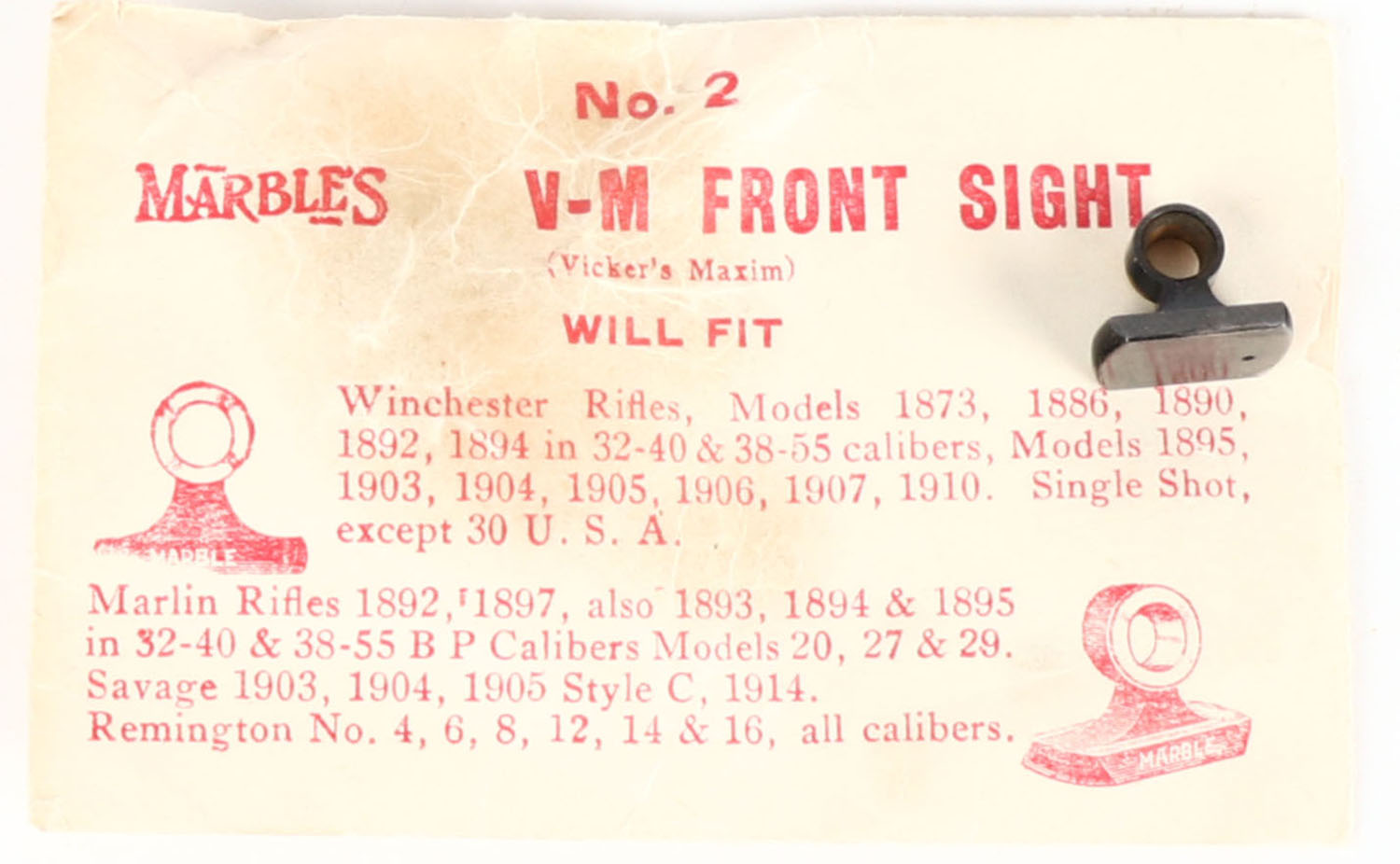 Marbles No. 2 V-M Front sight, in original packaging. Grade: Excellent ++ - Value: 40 to 100