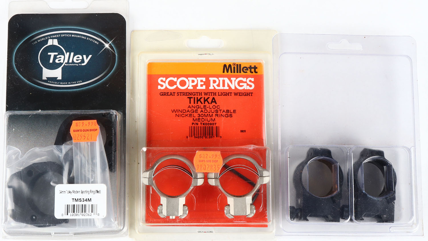 Lot of scope ring mounts in original packaging. Grade: Excellent - Value: 4 to 50