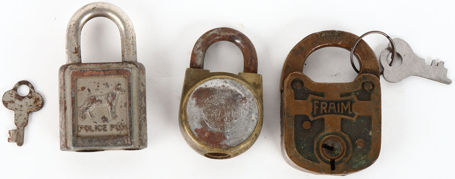 Lot of 3 Antique padlocks, 2 have keys. Grade: Very Good - Value: 10 to 60