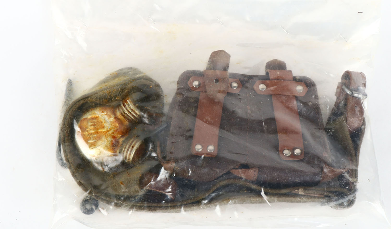 Large lot of ammo pouch, sling and small canister. Grade: Very Good - Value: 6 to 60