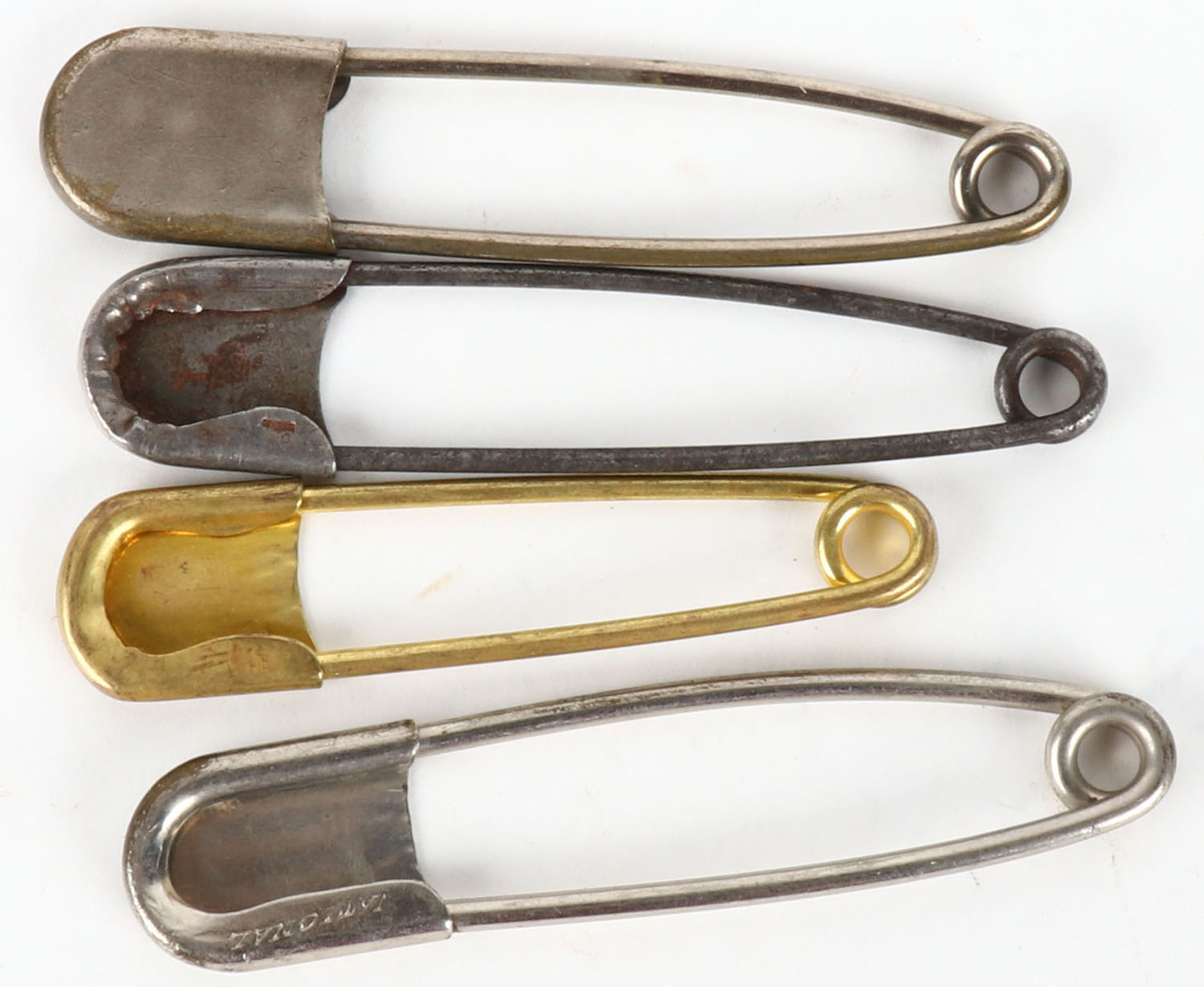 Lot of 4 Large Marker marked vintage safety pins, these are getting hard to find. Grade: Excellent - Value: 10 to 40
