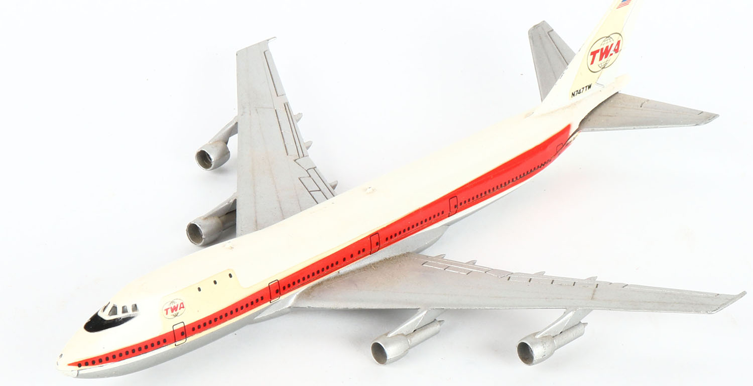TWA Vintage Jetliner heavy metal plane, 9 1/2'' long, Grade: Excellent - Value: 10 to 60