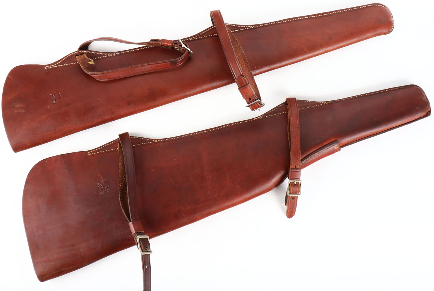 Lot of 2 Hunter leather scabbards for guns, 31'' long. Grade: Excellent ++ - Value: 10 to 100