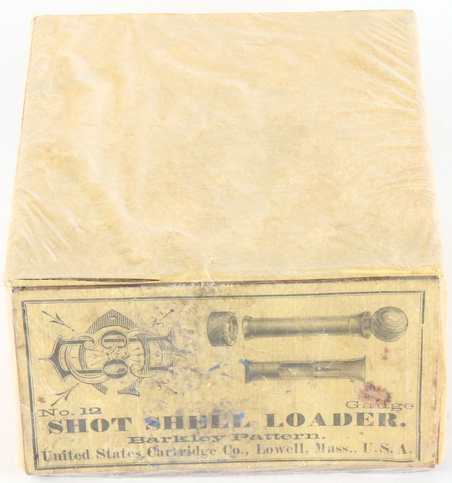 United States Cart. Co. Reloading box full of tools, some are marked 12. Grade: Excellent - Value: 40 to 300