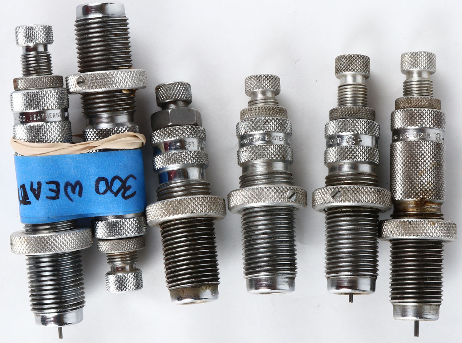 RARE! Lot of 6 C-H Tool & Die reloading dies, .(2) .222 Rem., (1) .357 mag., (1) 30-06 US and (2) .300 Weatherby, no box. Grade; Excellent - Value: 100 to 600