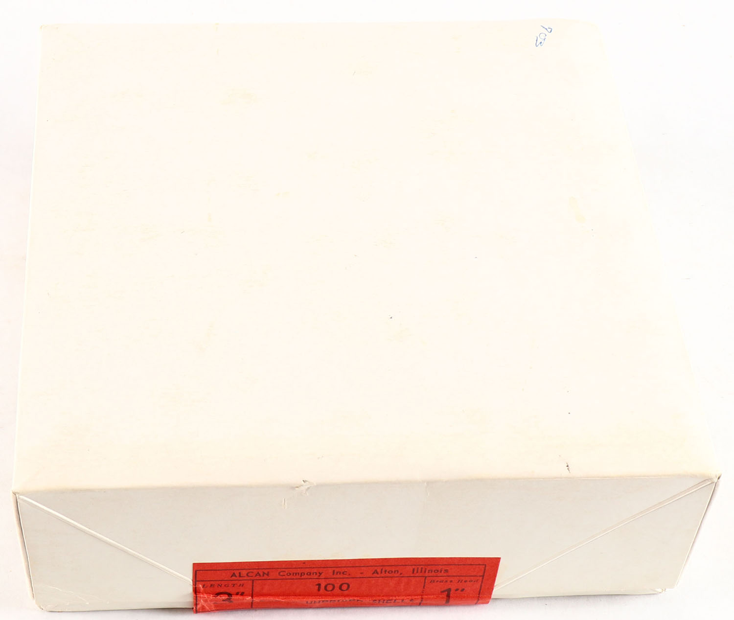 ALCAN Company Inc., 2 pc., Full & Sealed, Empty Unprimed Shells, 3'', Brass head 1'', white box with red labels, box is very solid. Grade: Very Good ++ - Value: 20 to 100