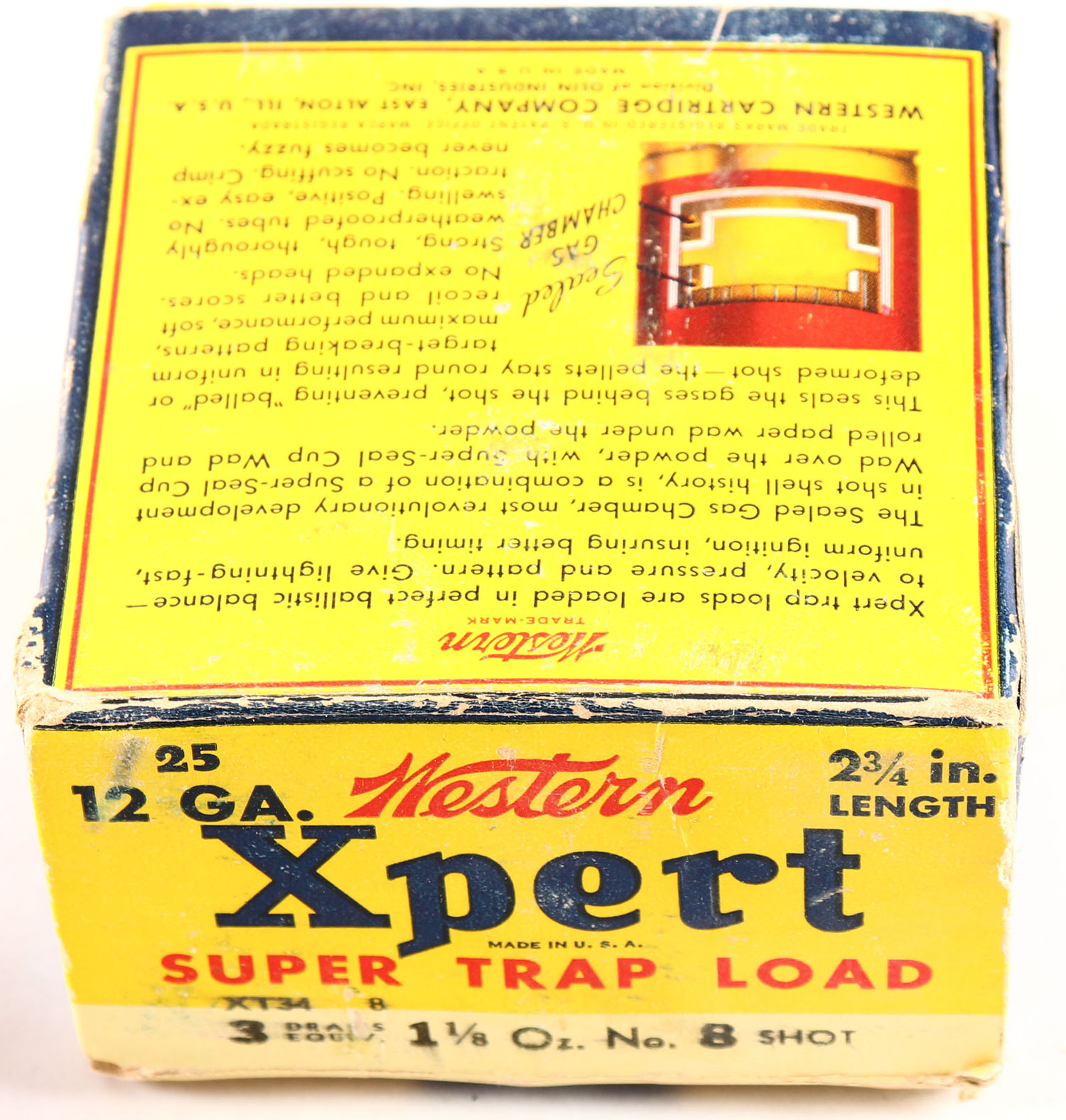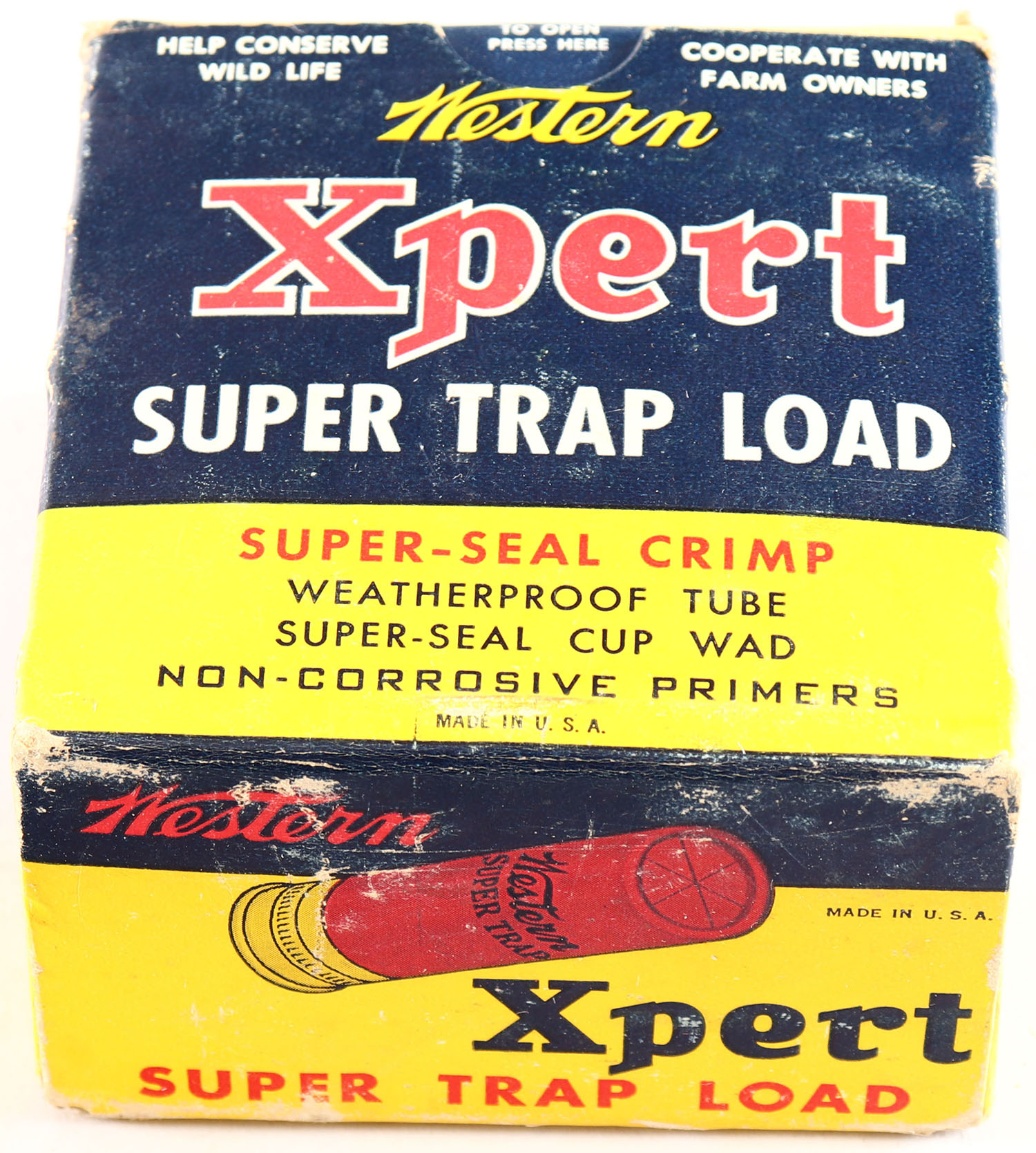 Western Xpert, Super Trap Load, 12ga., 1pc., Full of Rem-Umc shells, shot size 8, 2 3/4'', multi-colored box, box is solid with light scuffing and great color, shells are excellent. Grade: Excellent - Value: 10 to 30
