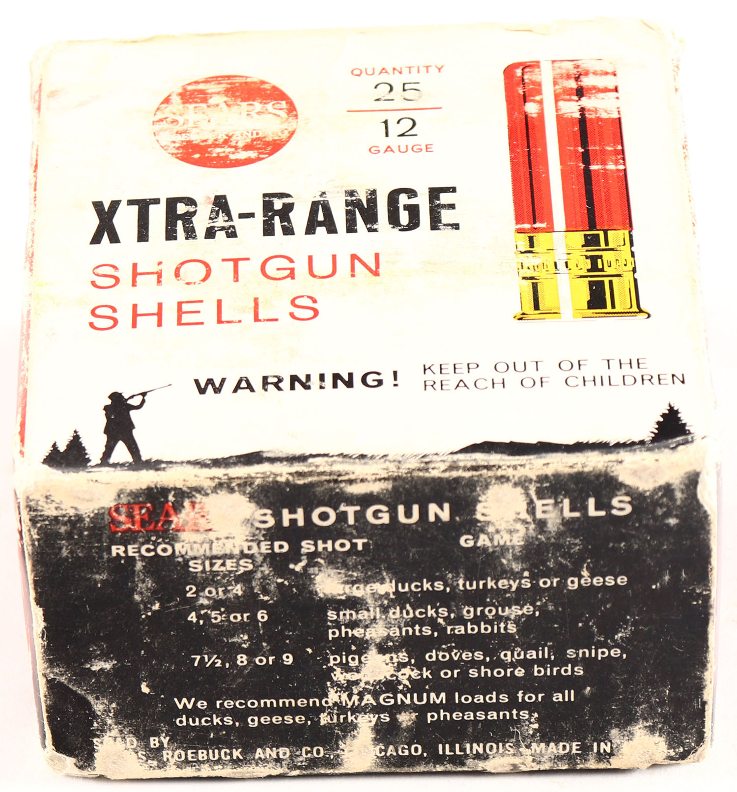 Sears, Xtra-Range, 12ga., 1pc., Full, Shot Size 6, box is solid with scuffing & very nice colors, shells are excellent. Grade: Excellent - Value: 8 to 20