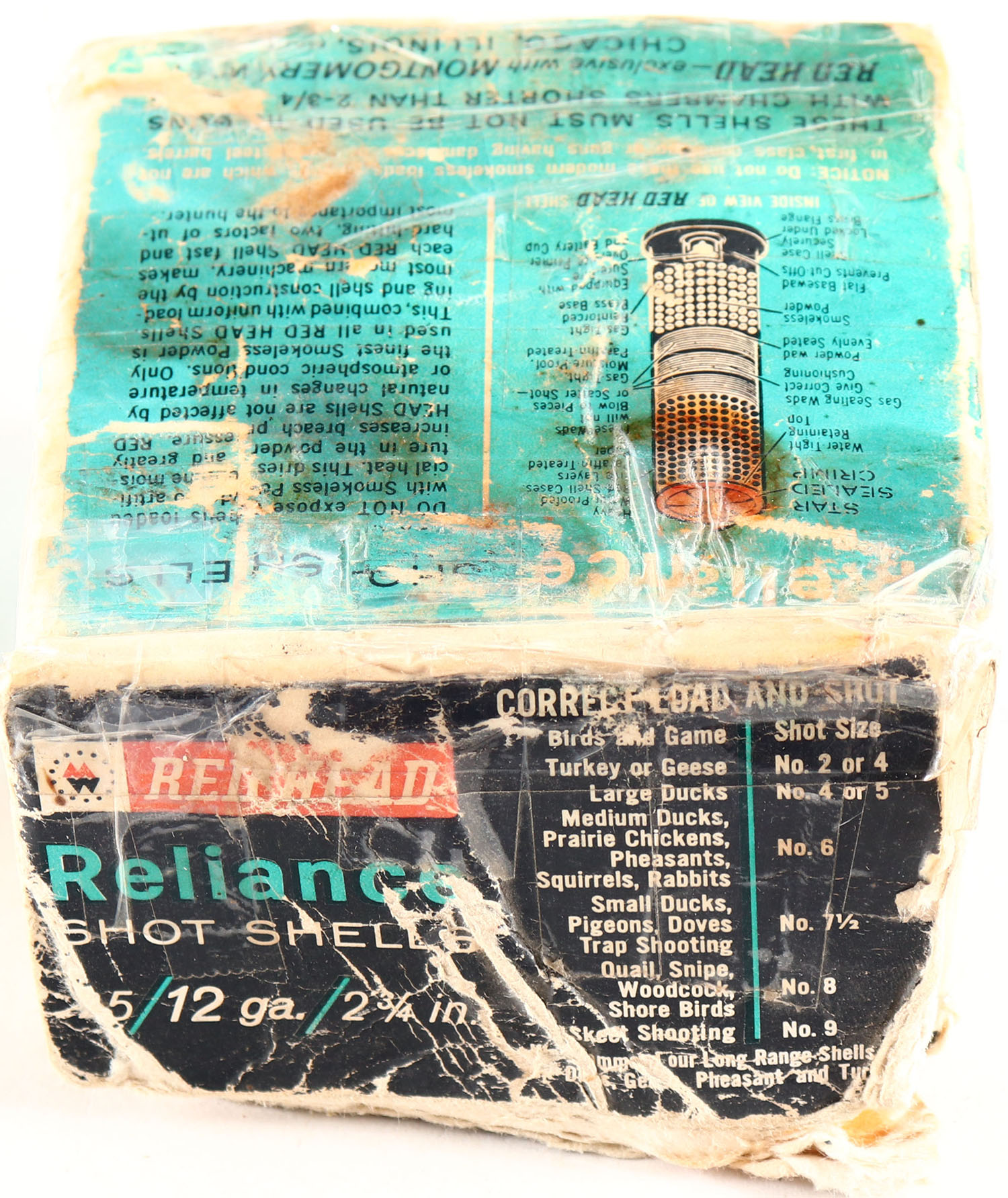 Montgomery Ward Red Head, 12ga., 1pc., Full, shot size 6, box has tape repair with very nice colors, shells are very good. Grade: Very Good - Value: 8 to 30