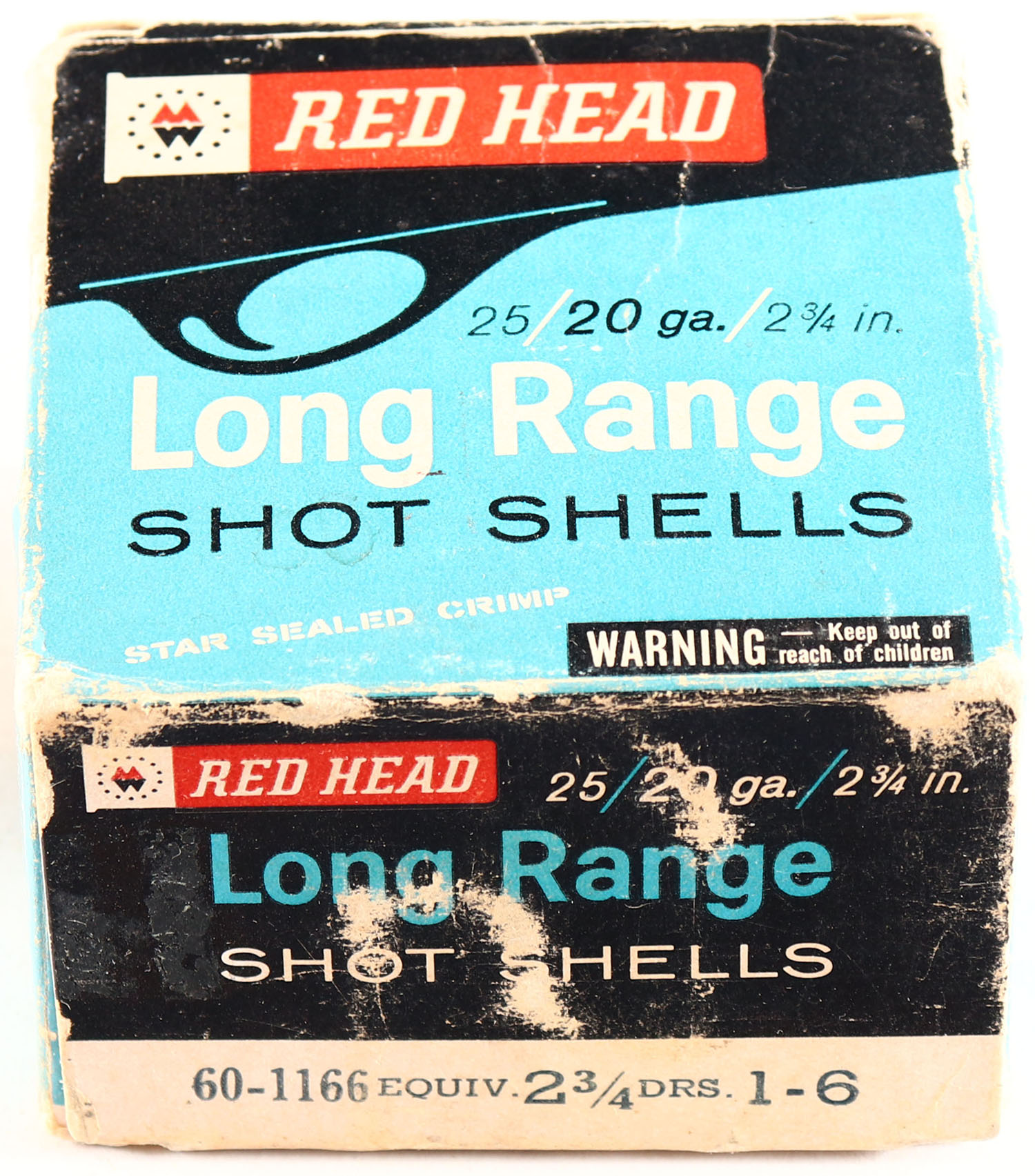 Wards Hawthorne, Long Range Shot Shells, 20 ga., 2 3/4'', 1pc., Full, shot size 6, box is solid with nice colors, shells are very good. Grade: Very Good ++ - Value: 10 to 30