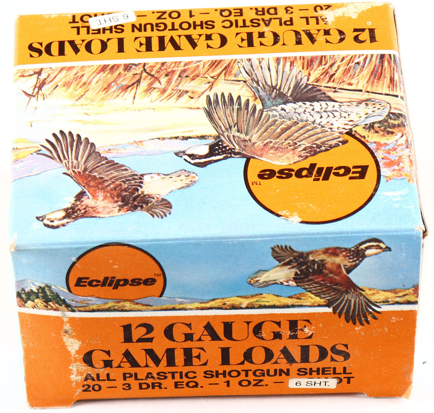 Eclipse, Game Loads, 12ga., 1pc., Full, shot size 6, multi-colored box, box is very solid, shells are excellent. Grade: Very Good ++ - Value: 10 to 20