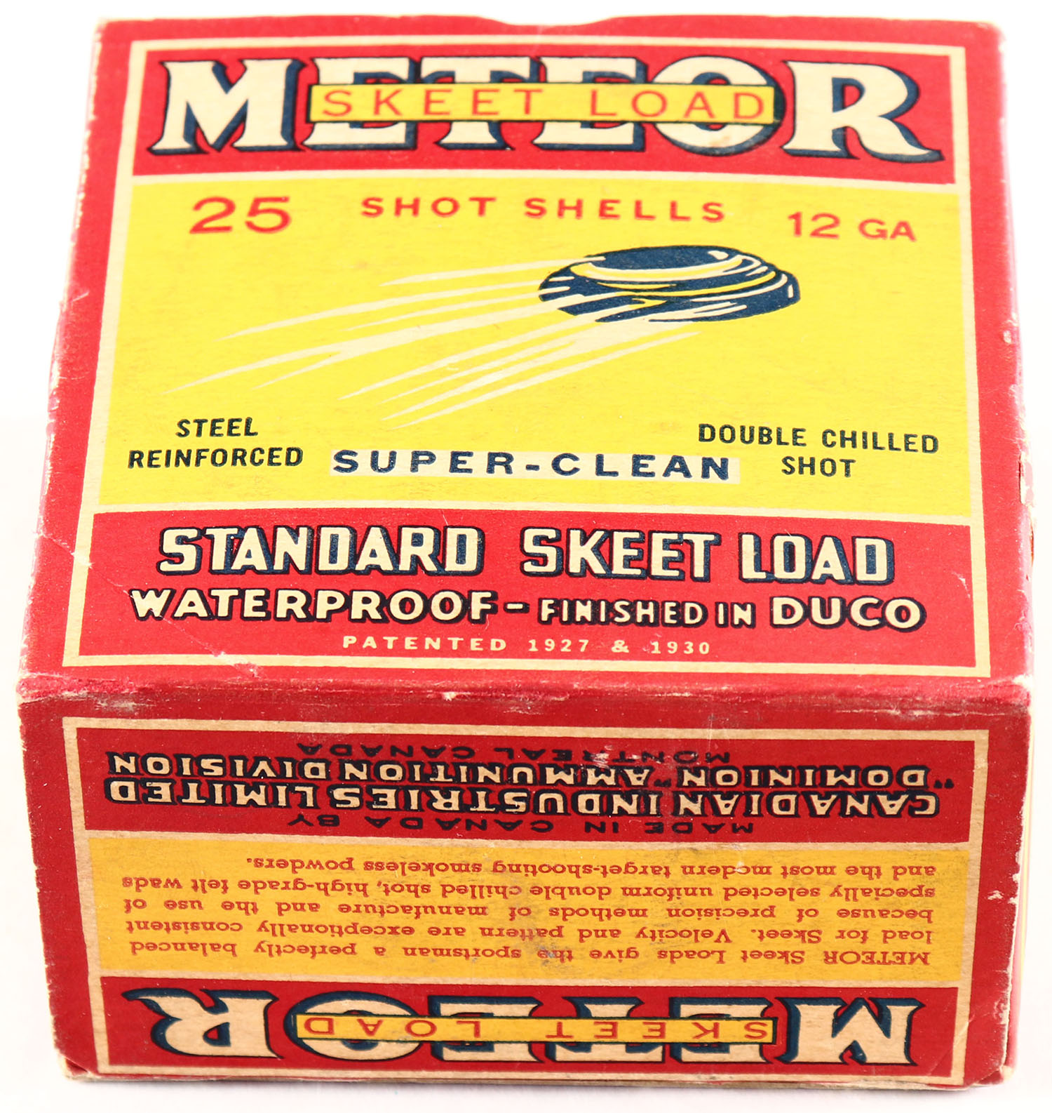 CIL, METEOR, Skeet Load, 12ga., 1pc., Empty, shot size 9CH., buff box with great colors, box is very solid. Grade: Excellent - Value: 40 to 200