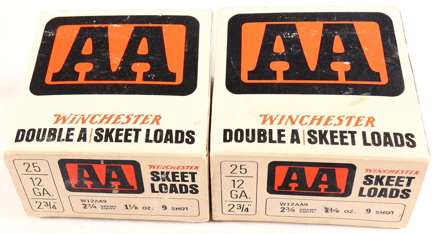 Lot of 2 Winchester, 12ga., 1pc., Appears Full, shot size 9, multi-colored boxes. Grade: Excellent - Value: 10 to 30