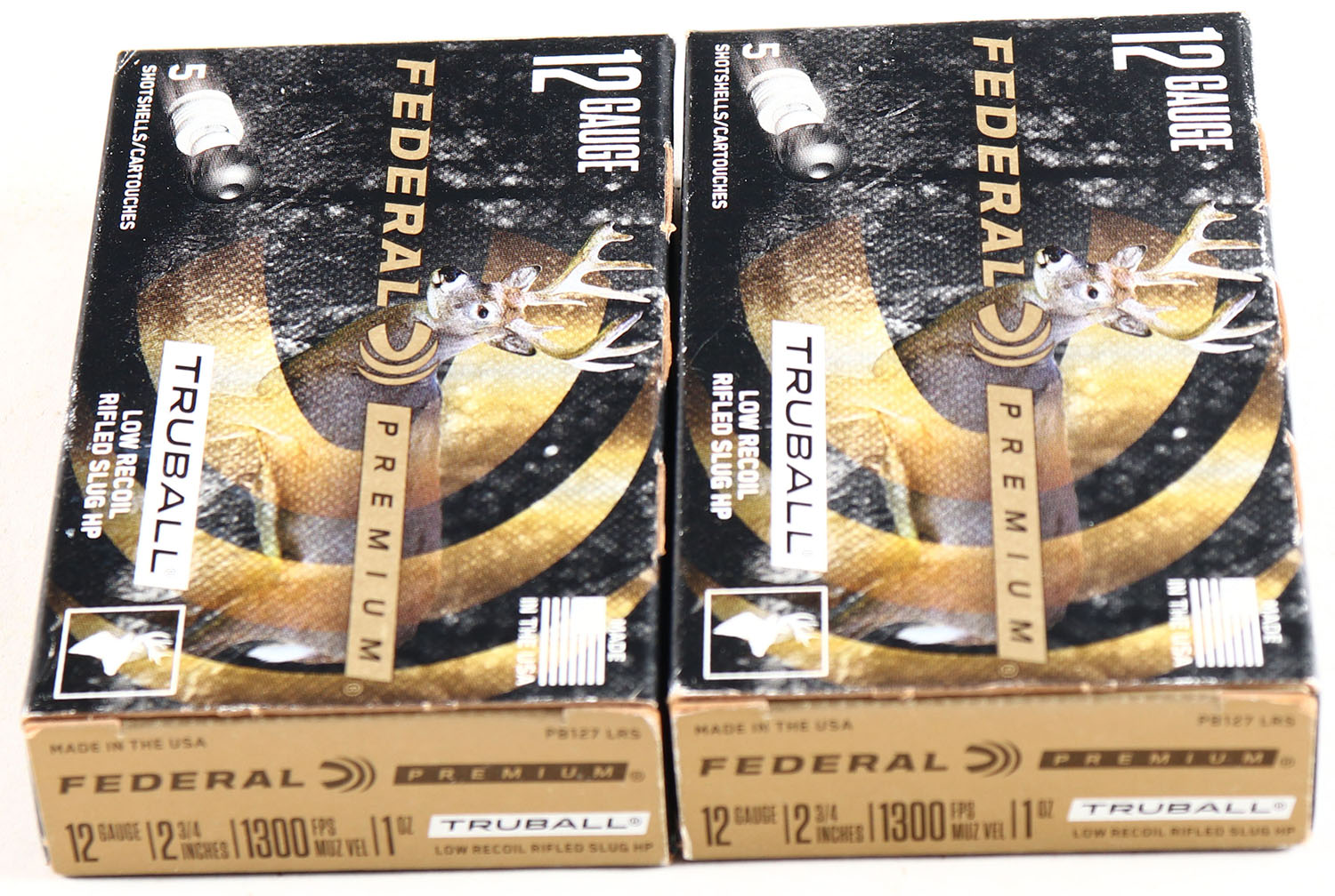 Lot of 2 Federal, 12ga., 1pc., Appears full, shot size Rifled Slug TRUBALL, multi-colored box. Grade: Excellent - Value: 10 to 30