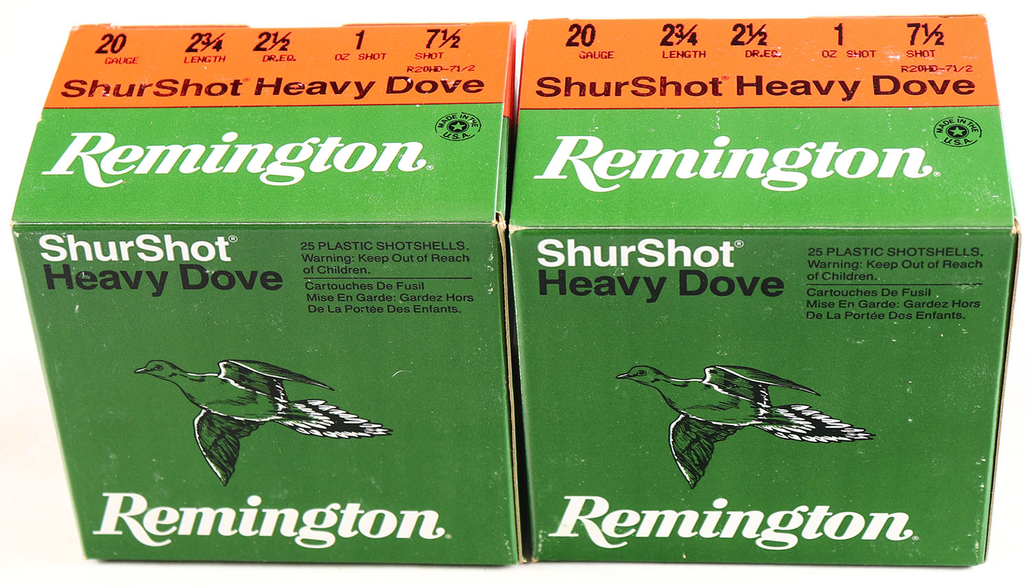 Lot of 2 Remington, 20 ga., 1pc., shot size 7 1/2, Full, multi-colored boxes. Grade: Excellent - Value: 20 to 40