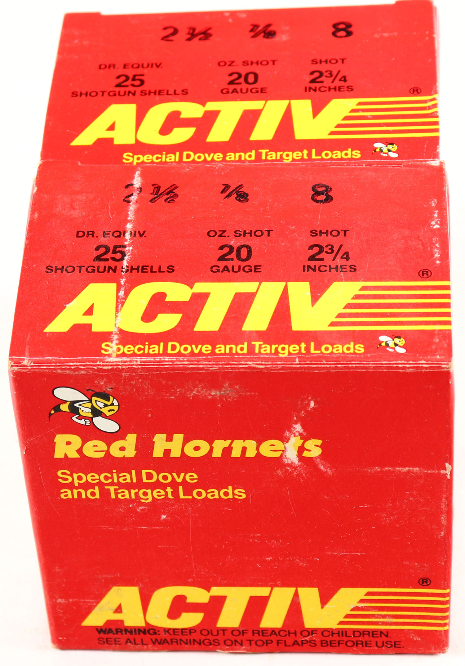 Lot of 2 Activ, 20ga., 1pc., Appears Full, shot size 8, multi-colored boxes. Grade: Very Good ++ - Value: 10 to 30