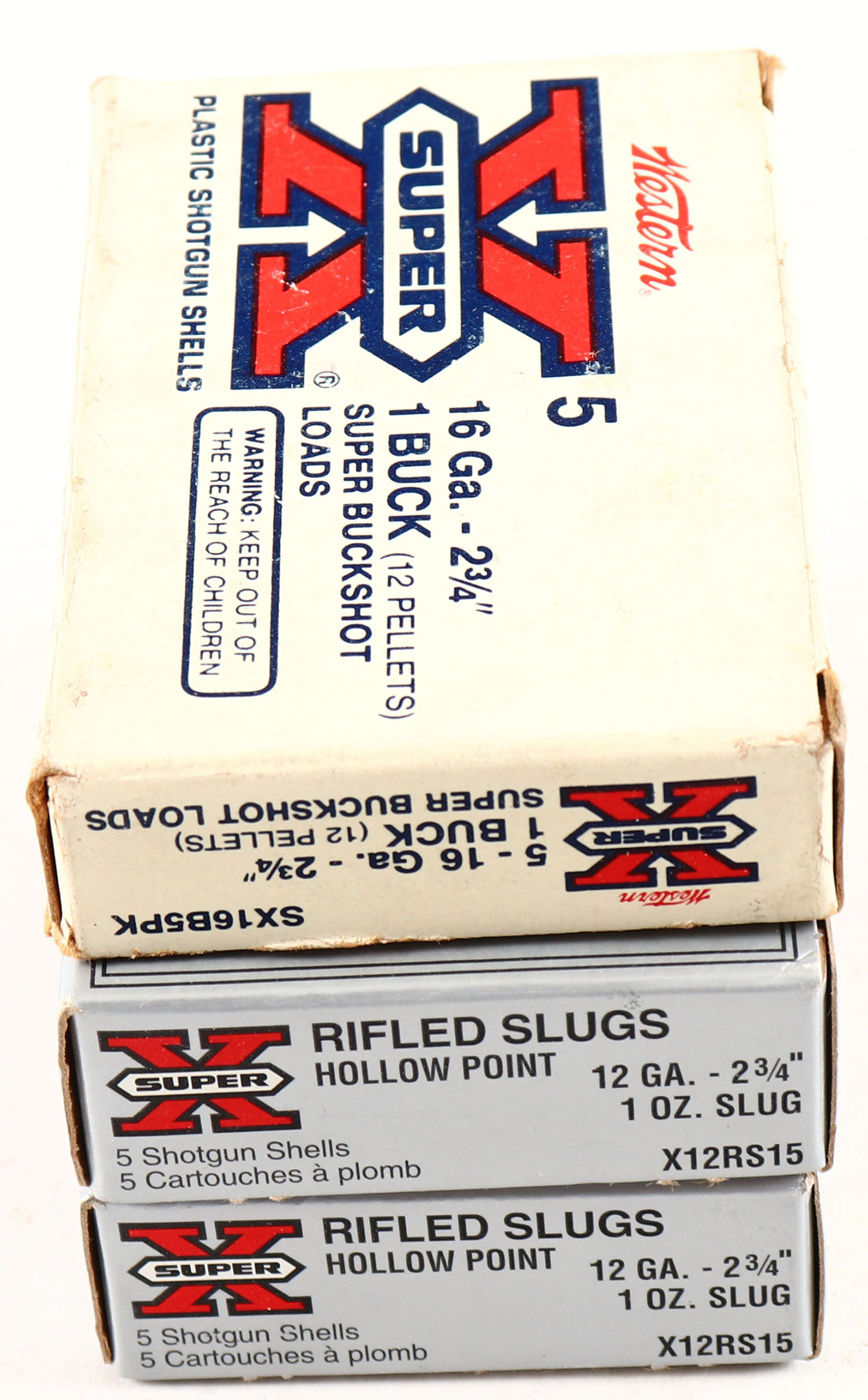 Lot of 3 Winchester & Western, 12ga. & 16ga., 1pc., Appears Full, shot size Rifled Slug, multi-colored boxes. Grade: Very Good ++ - Value: 10 to 30