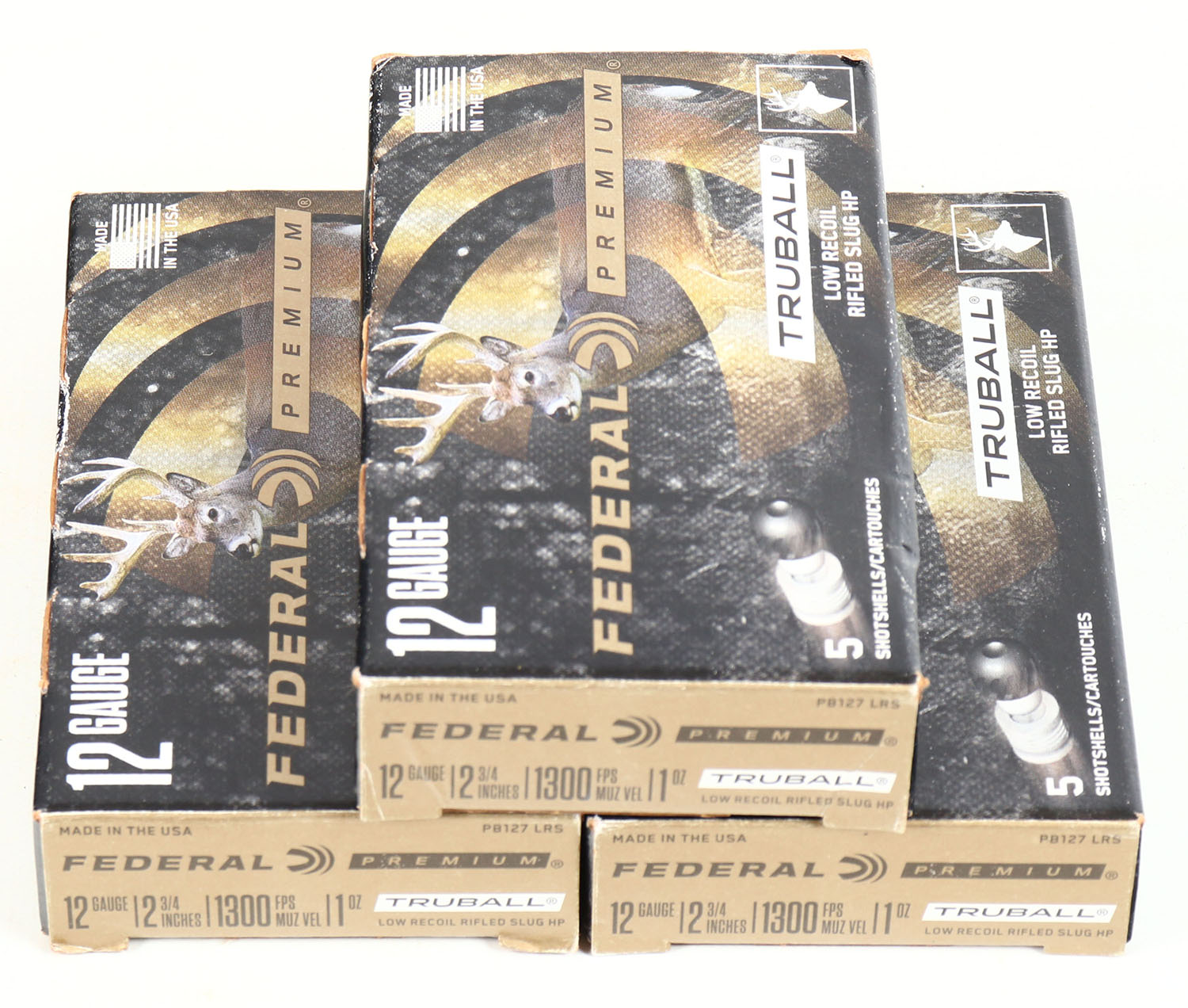 Lot of 3 Federal, 12ga., 1pc., Appears full, shot size Rifled Slug TRUBALL, multi-colored box. Grade: Excellent - Value: 10 to 30