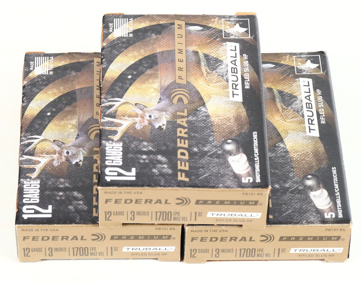 Lot of 3 Federal, 12ga., 1pc., Appears full, shot size Rifled Slug TRUBALL, multi-colored boxes. Grade: Excellent - Value: 10 to 30