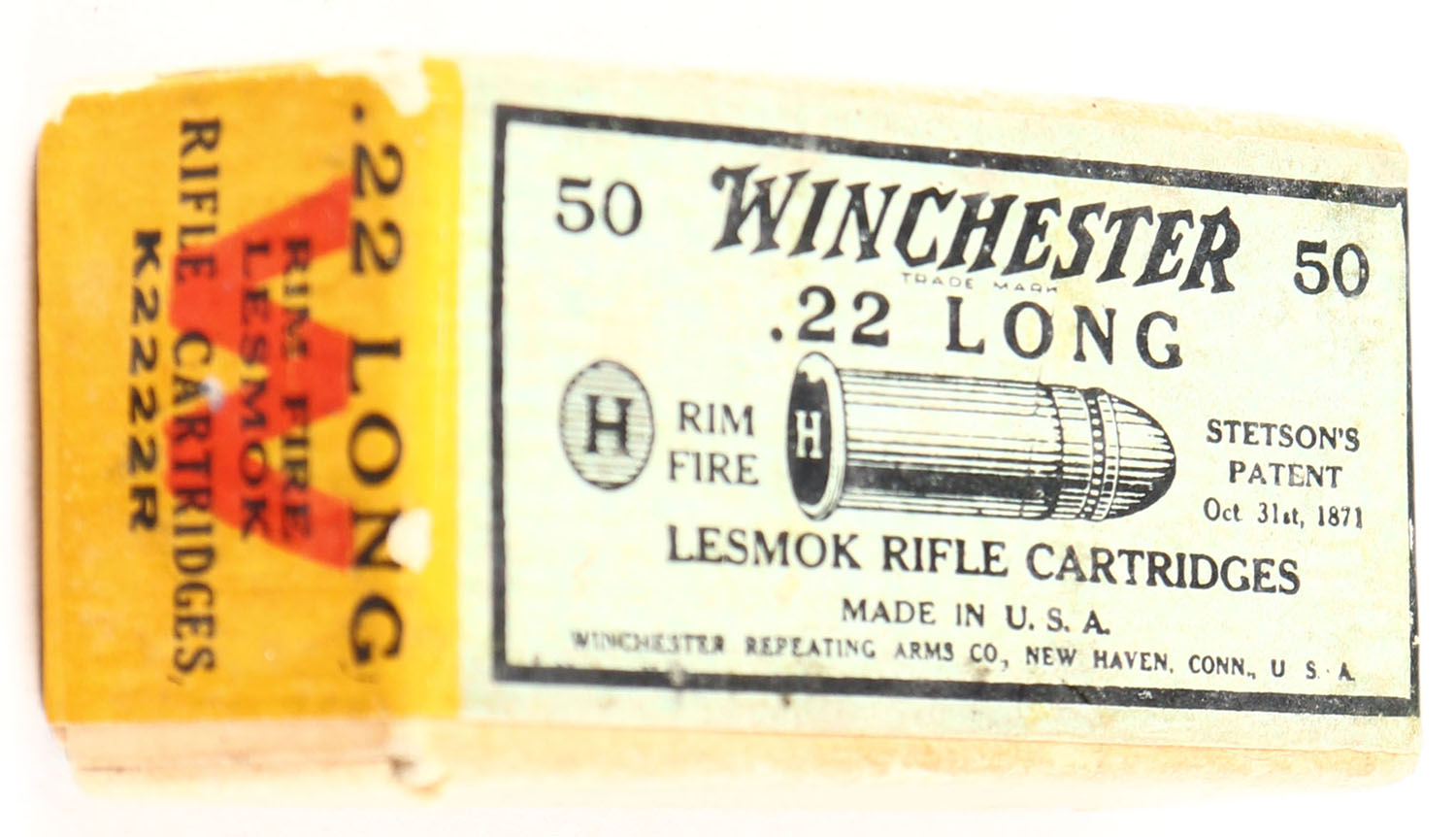 | Winchester, .22 Long, Lesmok Rifle Cartridges, RR: WRA-179L-58b,...