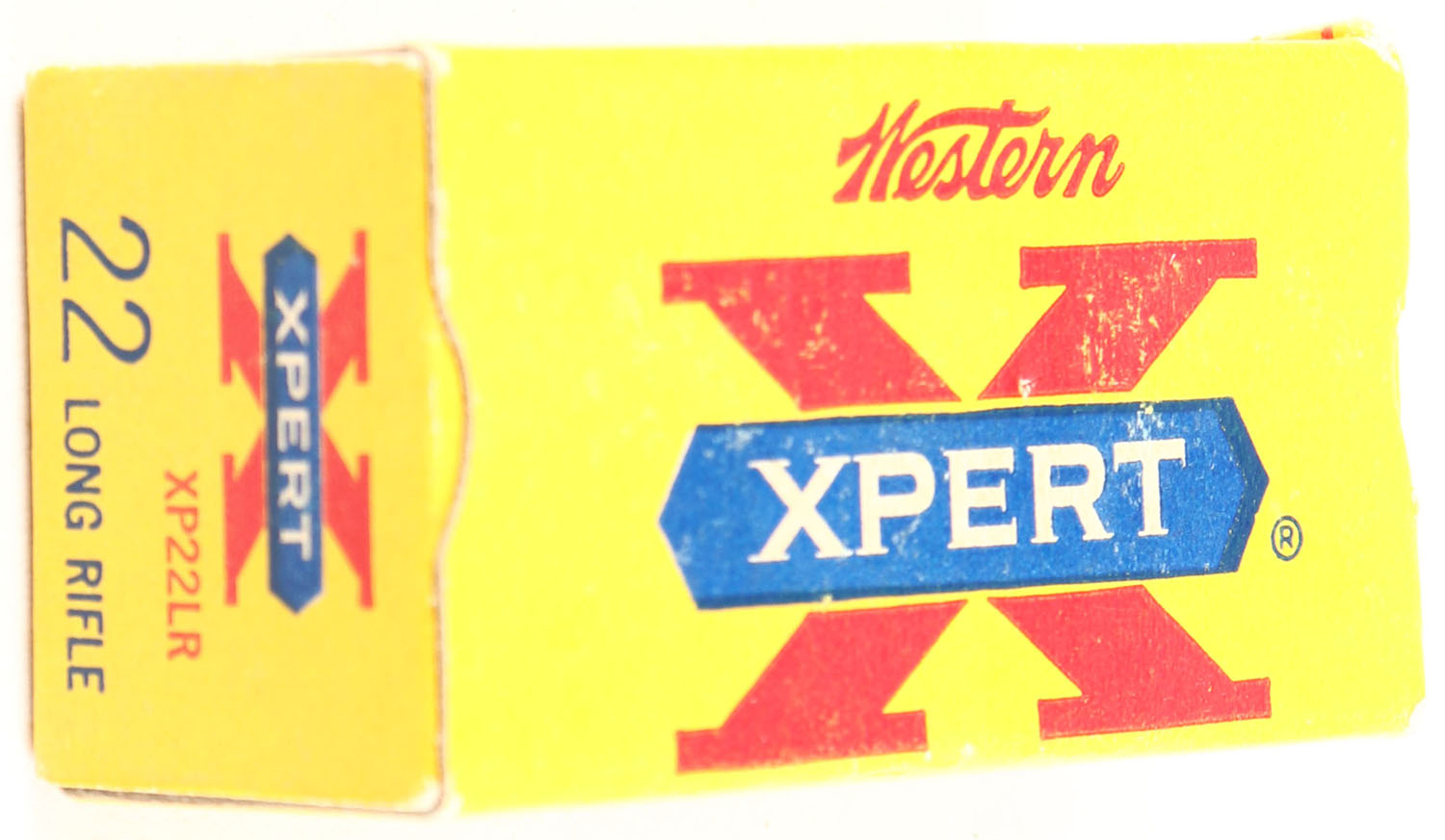 Western, Xpert, .22 Long Rifle, 40 Grain Special Lubricant, RHWeb: WCC-52 LR-2a, Full, 1pc. Yellow red & blue box, box is solid with excellent color, very minor age soiling & shelf wear, corners are mostly sharp, edges are crisp, end flaps are solid, ammo is minty. Grade: Excellent + - Value: 6 to 30