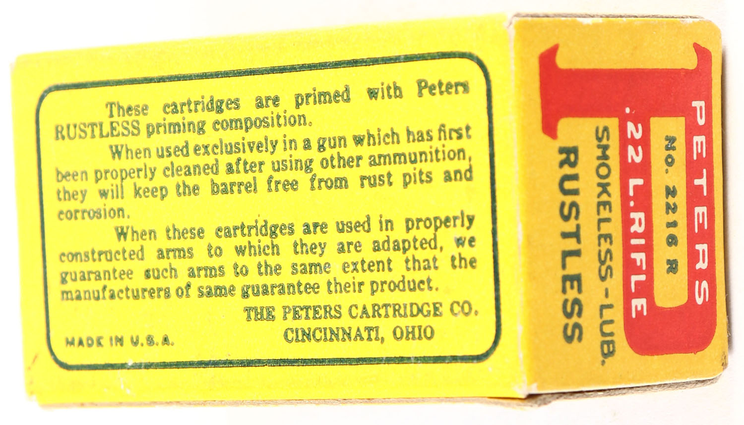 | Peters, Rustless, .22 Long Rifle, Smokeless Lubricated, Cincinna...
