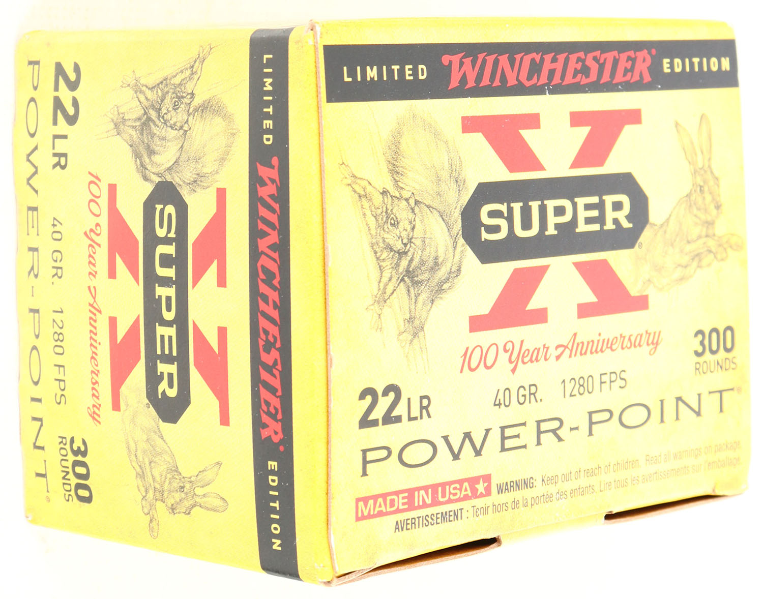 Winchester, Super X Power-Point, .22 Long Rifle, Full, 300rds. 1pc. Yellow black & red bulk box, box is MINT with minty color, corners are sharp, edges are crisp, top flap is solid, ammo is mint. Grade: MINT - Value: 20 to 60