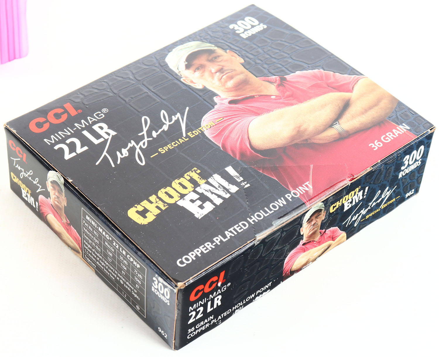CCi, Mini-Mag, .22 LR Copper Plated Hollow Point, Troy Landry Special Edition, Full, 300rds. bulk box, box is near mint with minty color, only has tape on front edge, corners are sharp, edges are crisp, top flap is solid, ammo is mint. Grade: Excellent ++ - Value: 20 to 40