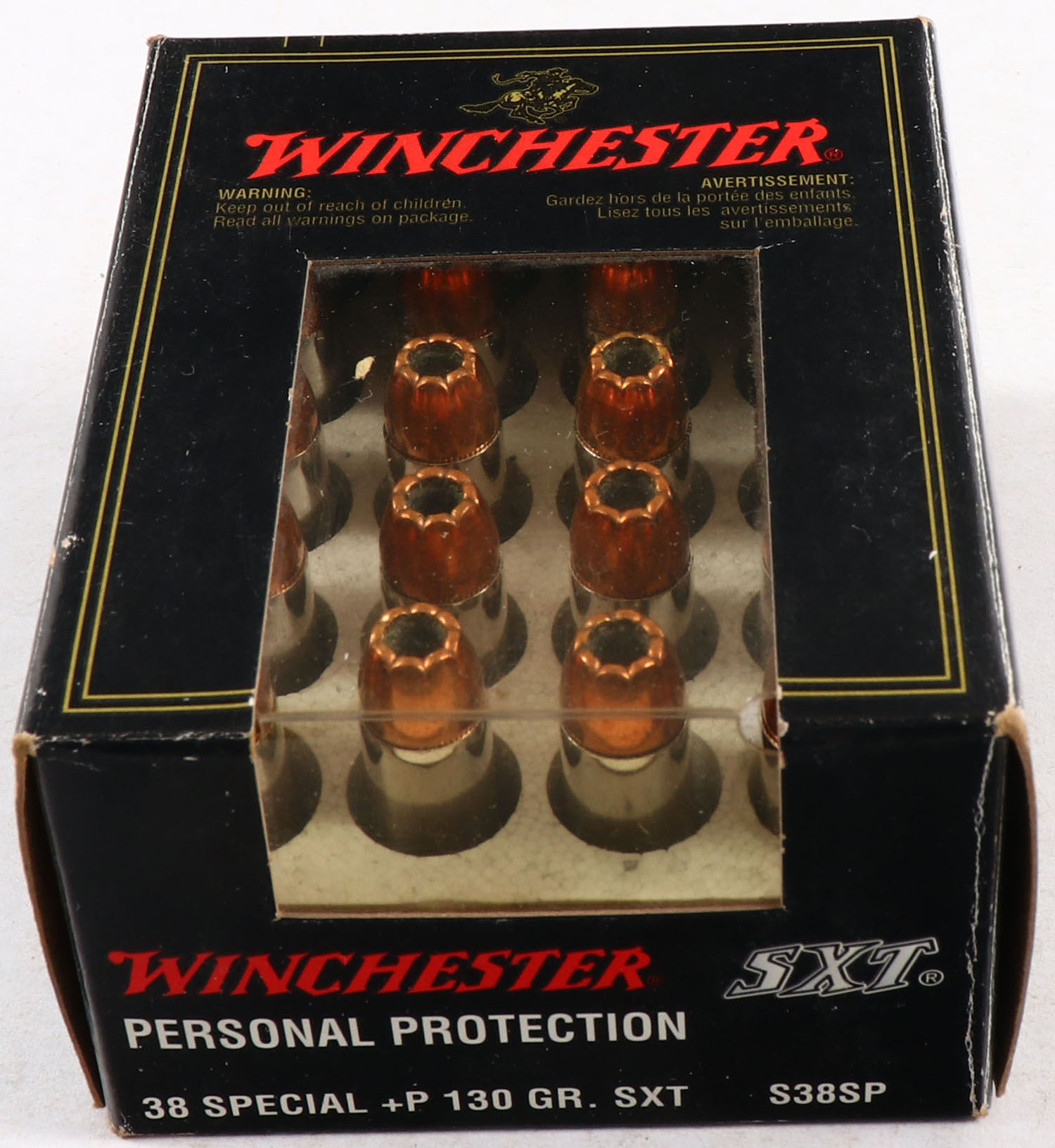 Winchester, Supreme, 38 Special +P, 130 Grain SXT, Full, 1pc. Black red & white box, box is solid with very good color, shelf wear, end flaps are solid, ammo is excellent. Grade: Excellent - Value: 20 to 60