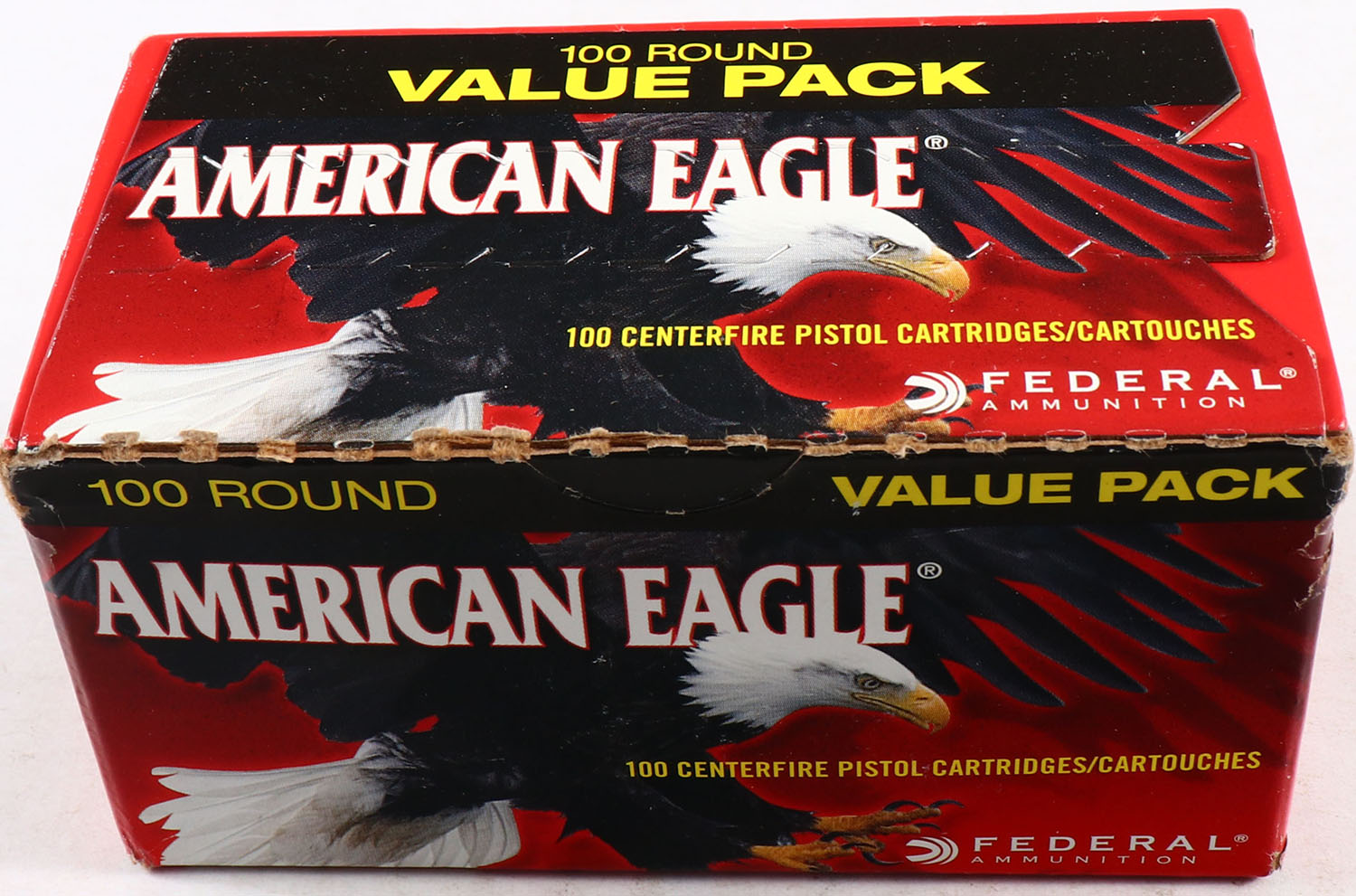 Federal, American Eagle, 40 S&W, 180 Grain FMJ, FULL & SEALED, 1pc. Multi-colored box, box is solid with great color, light edge & corner wear, end flaps are solid. Grade: Excellent - Value: 10 to 50