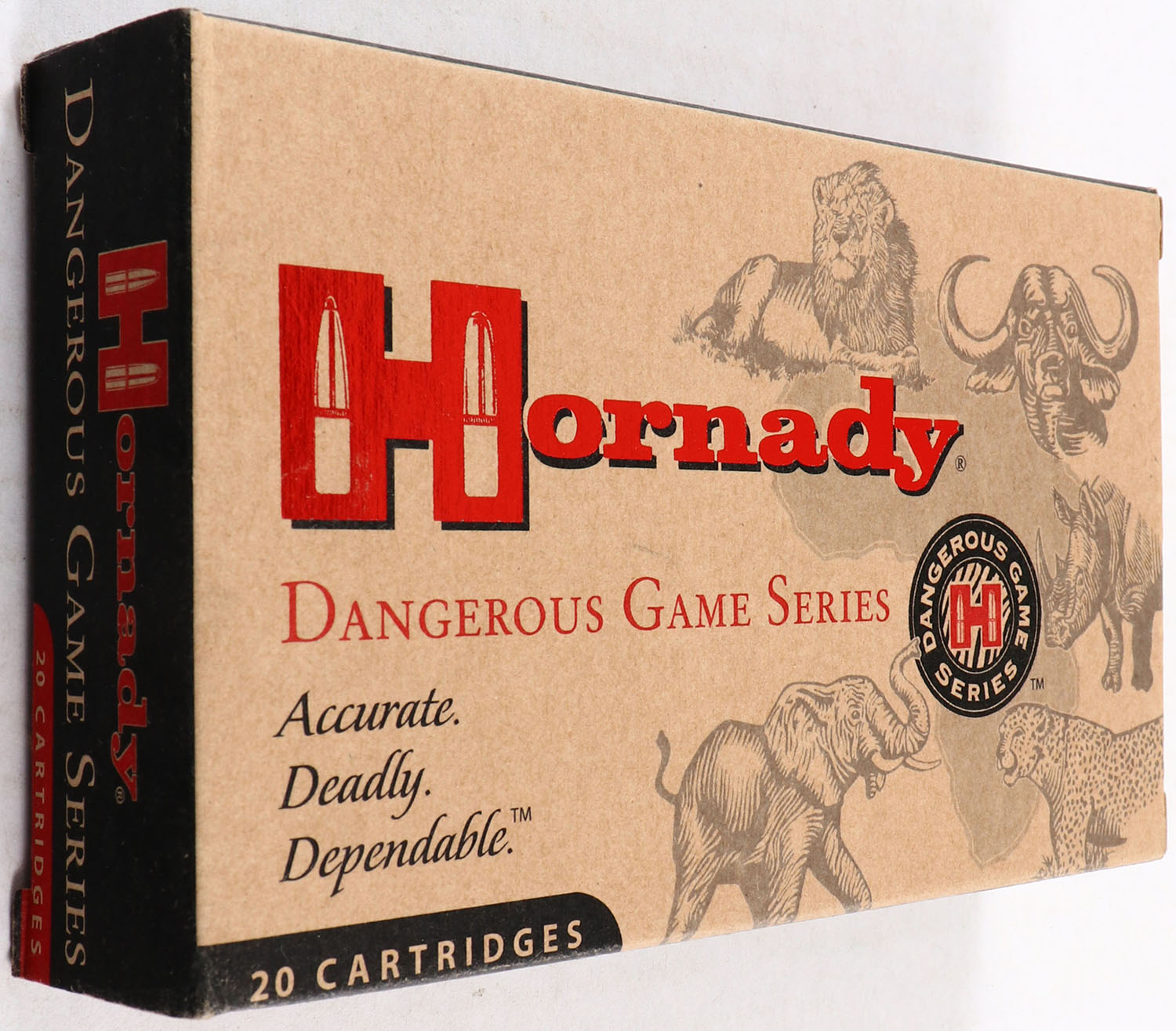 Hornady, Dangerous Game Series, 375 RUGER, 270 Grain SP-RP Superformance, Full, 1pc., multi-colored box, box has excellent color, ammo is excellent. Grade: MINT - Value: 20 to 60