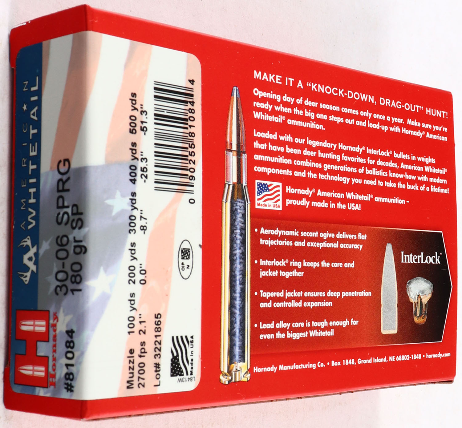 | Hornady, American Whitetail, 30-06 SPRG, 180 Grain SP, Full, 1pc...