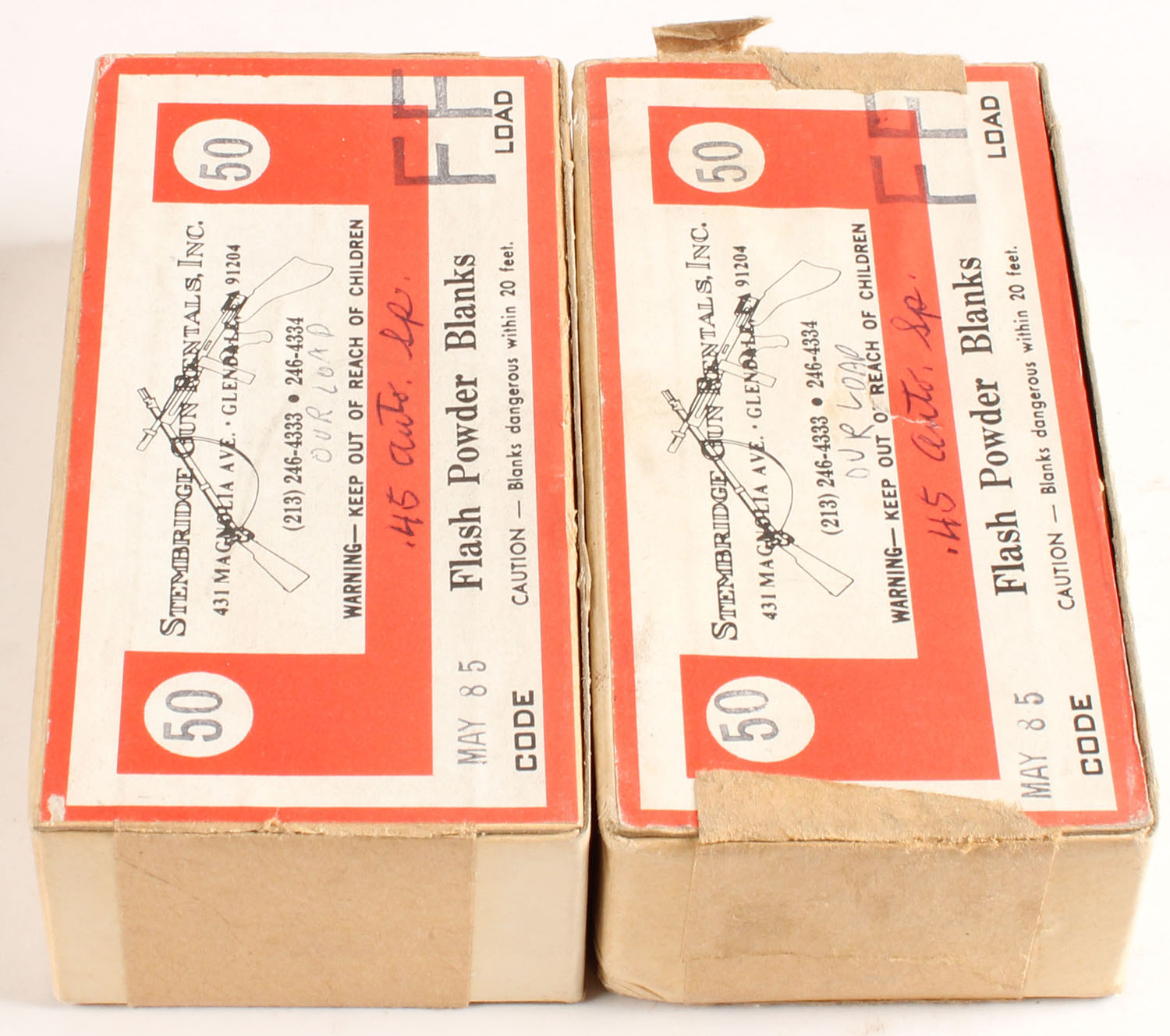 Stembridge Gun Rentals Inc., Lot of 2 .308 WIN., Flash Powder Blanks from the famous Hollywood gun rental company Full, 1pc., multi-colored box, box is solid with great color, ammo is excellent. Grade: Very Good ++ - Value: 20 to 80