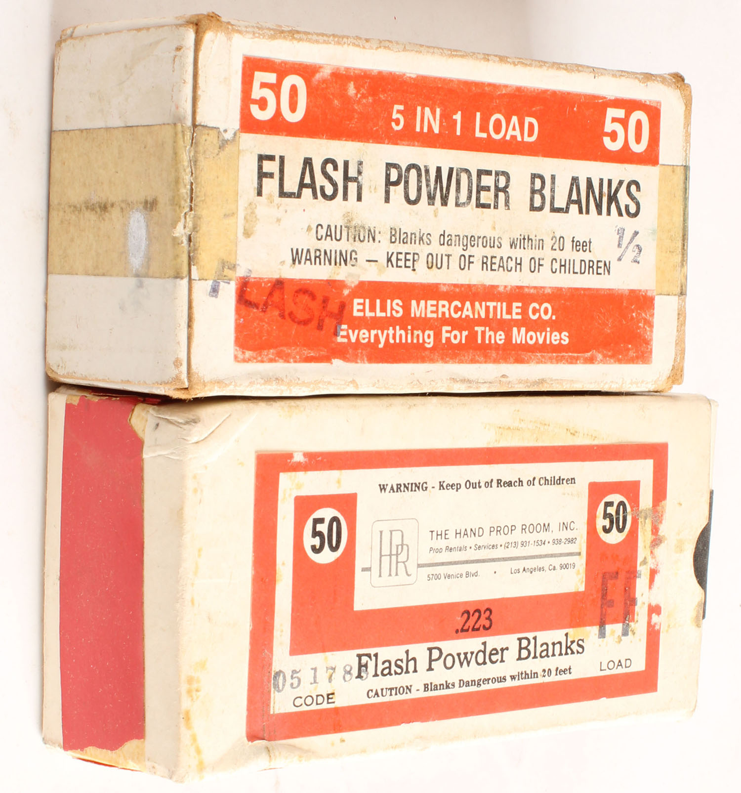 The Hand Prop Room Inc., Lot of 2, .223 & 5 In 1 Flash Powder Blanks, Full, 1pc., multi-colored box, box is solid with great color, ammo is very good. Grade: Very Good - Value: 20 to 80