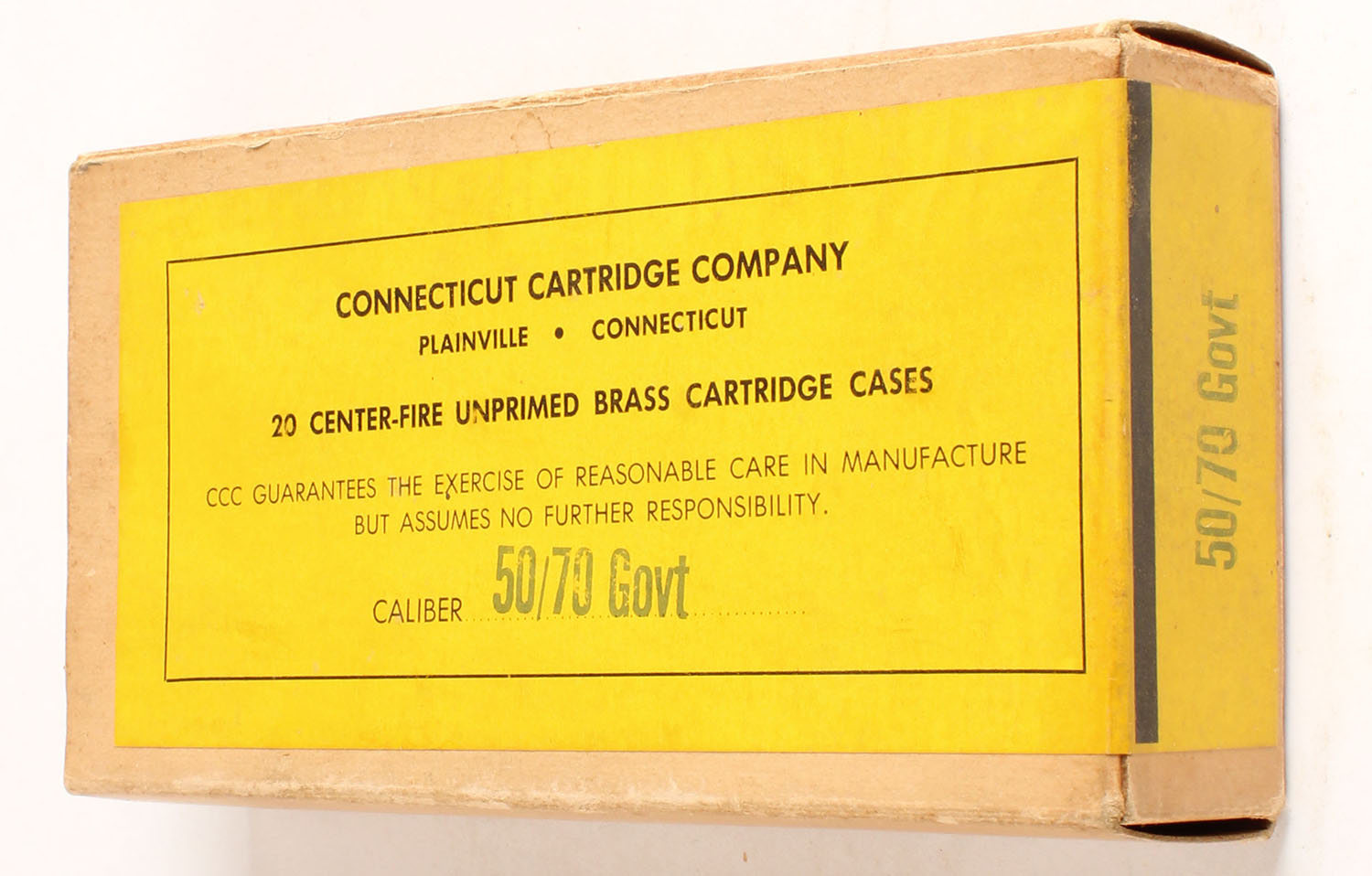 Connecticut Cartridge Company, 50-70 Gov't, Full of Unprimed Brass Cartridge Cases, 1pc., box is very solid, Ammo is excellent. Grade: Very Good ++ - Value: 10 to 60