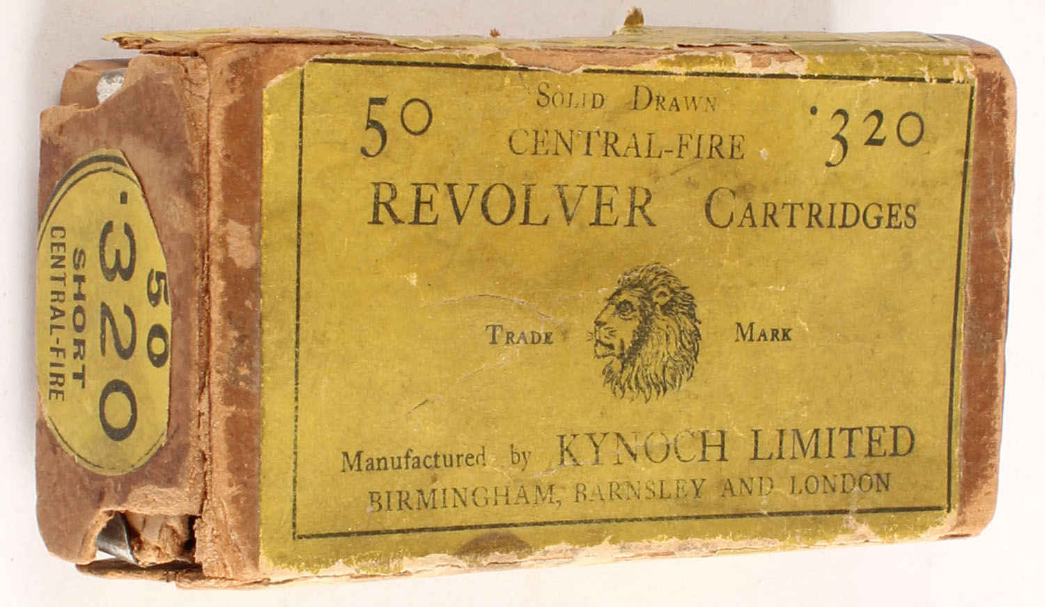 | Kynoch, .320 Revolver Cartridges, Partial 27rds., 2pc. Buff box ...