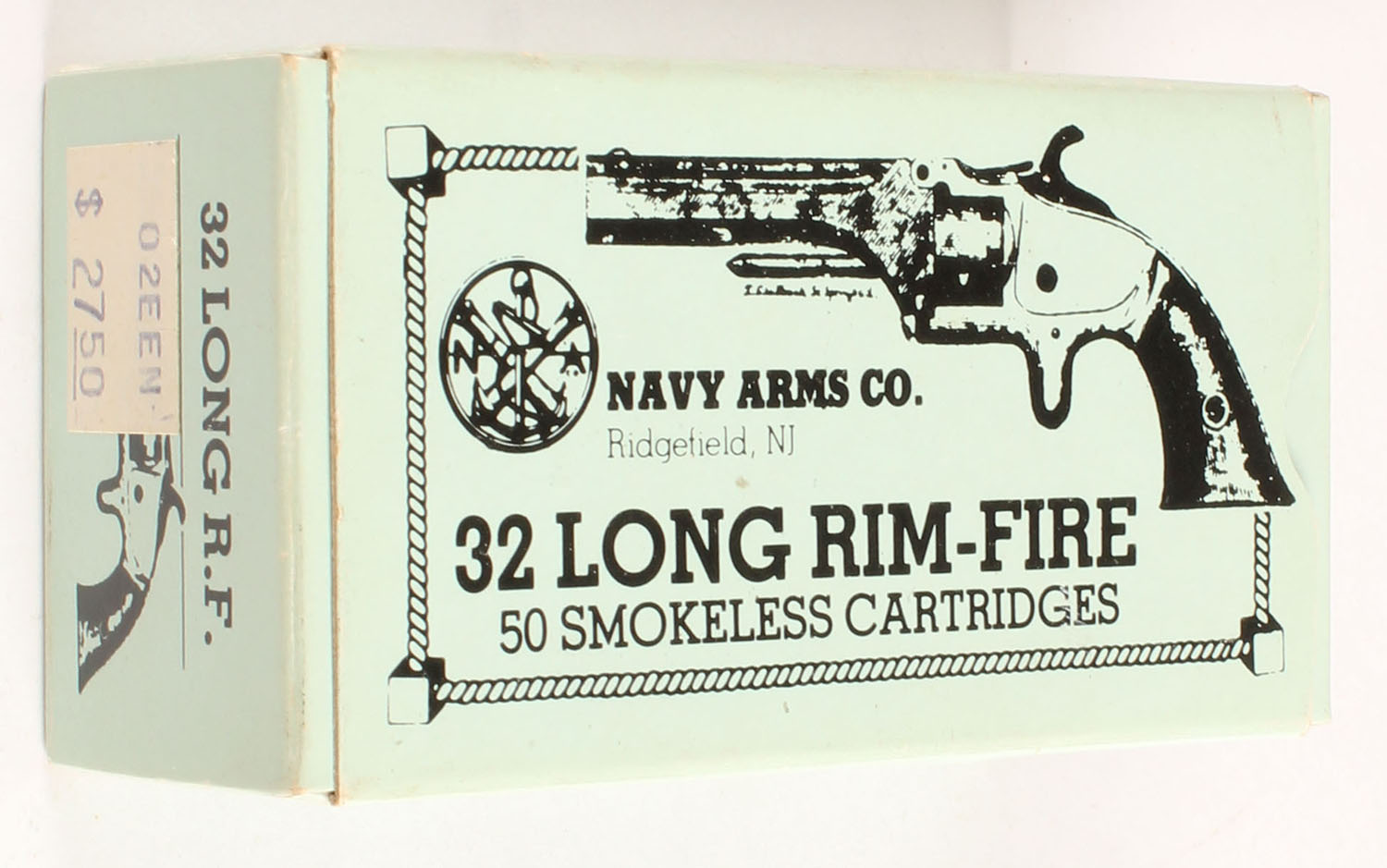 Navy Arms Co., 32 Long R.F., Partial 44rds, 1pc. Multi-colored box, box is minty, with excellent color, Ammo is excellent. Grade: Excellent ++ - Value: 40 to 100