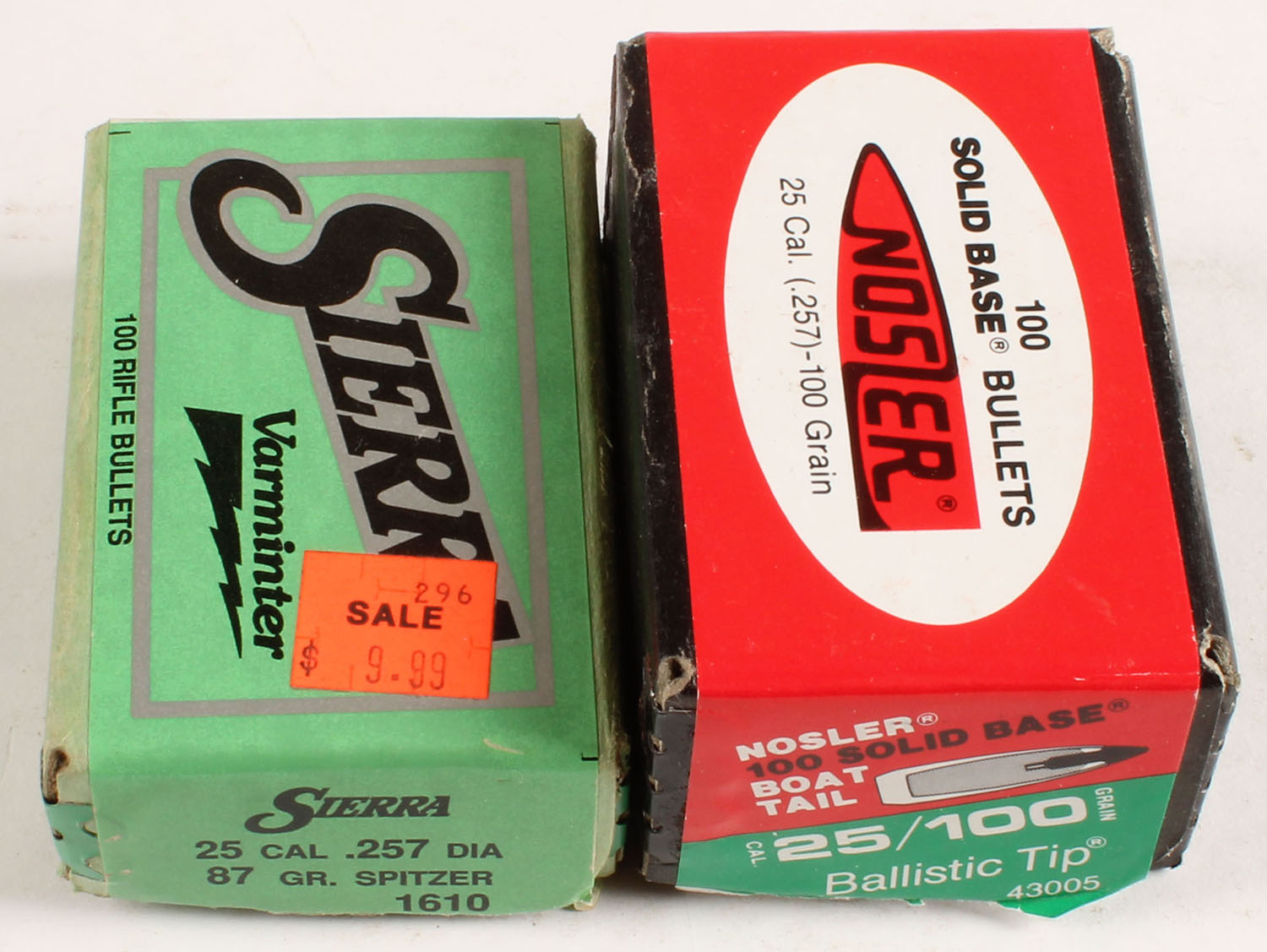 Mixed Mfg., lot of 2 boxes of bullets, .25 Cal., boxes appear Full, bullets are excellent. Grade: Very Good - Value: 10 to 50
