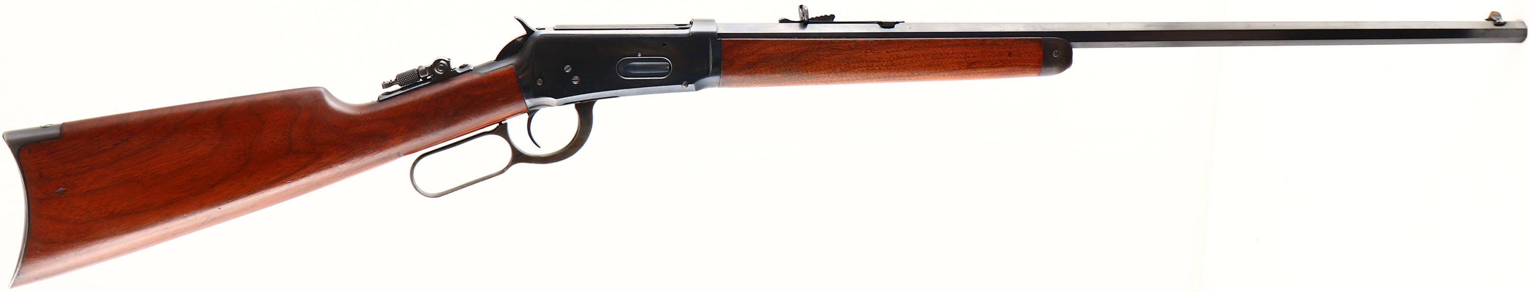 Winchester, Model 1894, CAL: 32-40, MFG: 1914, SN: 686030, Lever Action Rifle, 26'' Octagon Barrel, Button half mag. The original wood stocks are excellent, with a few light handling marks, scuffs & contusions to the original excellent finish. There is some thinning of the finish at the carry points. The original factory metal blue finish is 95% on the barrel, 90% on the receiver. There is an area of cleaned rust pitting along the barrel edges of the upper flat between the roll stamp & rear sight, not distracting to overall appearance. The case-hardened lever displays very nice case-colors. Bore is excellent. Rifle fitted with a Lyman tang peep sight, factory adjustable rear & pinch blade front sights. Metal crescent buttplate. Tight smooth action. An overall excellent original condition rifle & very collectible in one of the rarer calibers & as a button mag. FFL or C&R Req. - Value: 4500 to 6000