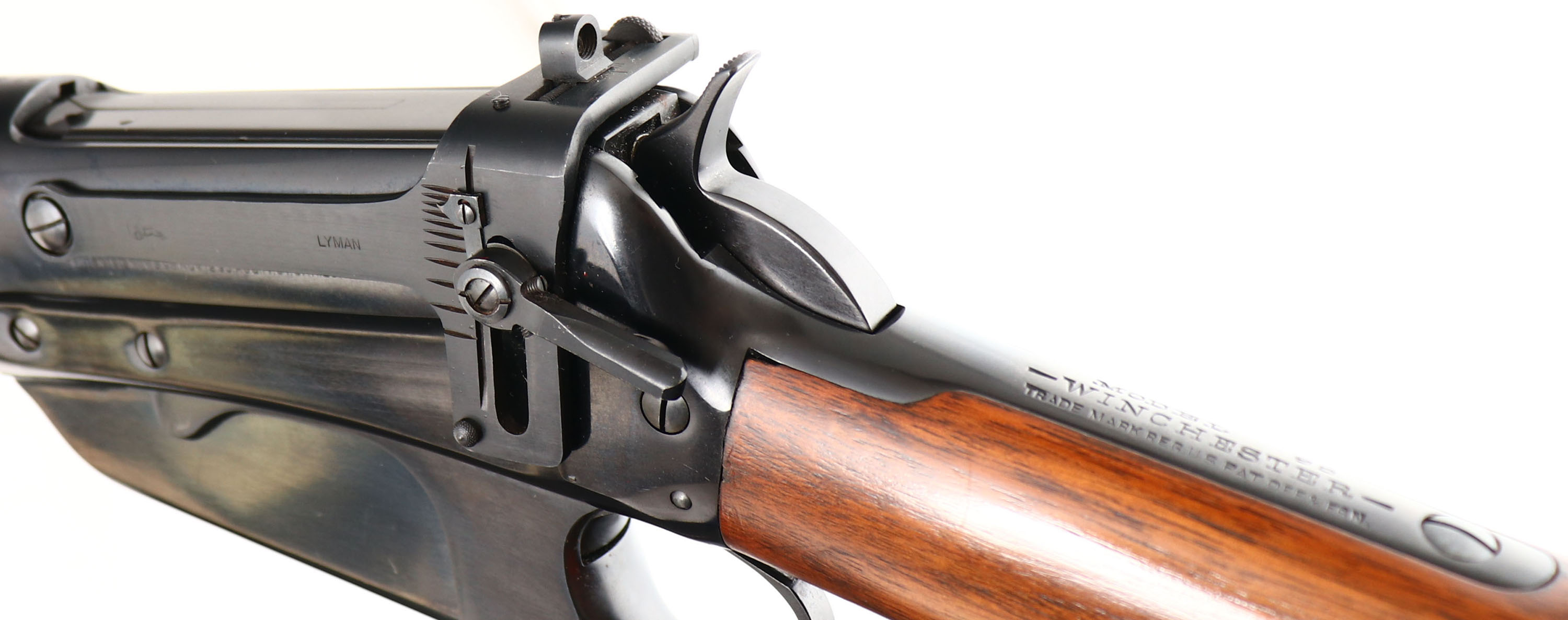 SUPERB Winchester Model 1895, CAL: marked 303 British, MFG: 1924, SN: 419874, Lever Action Rifle, 28'' Tapered round barrel. The factory straight grip wood stock & schnabel forend, with the ebony inlay, are excellent. The finish is excellent, with very few tiny handling marks. The original metal blue finish rates 99% on the barrel, 98% on the receiver lever & box mag. Bore is excellent & bright. The rifle is fitted with a Climbing Lyman #21 receiver sight, factory adjustable rear sight & a small blade front sight. Buttstock carries a crescent metal buttplate. An overall fantastic, extremely high original condition & very collectible example. This would be very difficult to improve upon. FFL or C&R Req - Value: 5000 to 8000