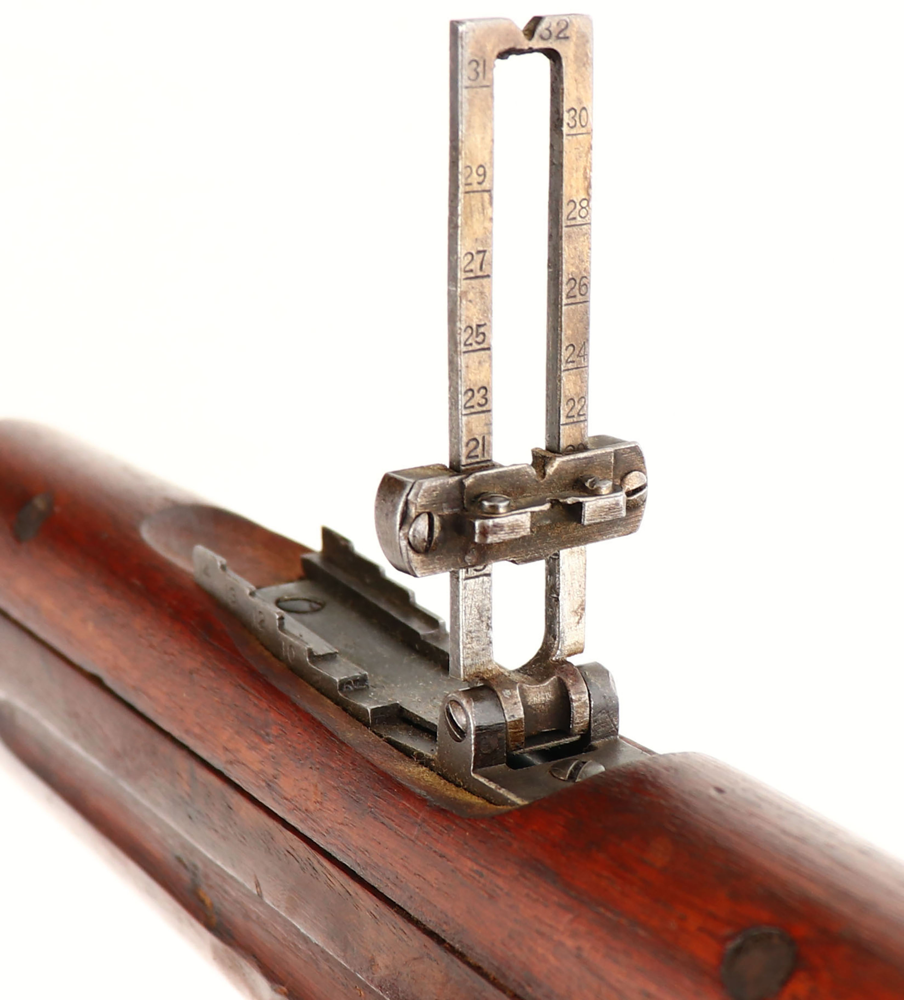 Winchester Model 1895, Russian Contract, CAL: 7.62x54R, MFG: 1916, SN: 270301, Lever Action Rifle, 28'' barrel. Between 1915 & 1917 Winchester manufactured approximately 300,000 Model 1895 chambered for the Russian 7.62x54R cartridge & equipped with stripper clip guide ears. The frame at the breech is marked with the WP proof & ''7.62/M.M.'', right side of receiver is stamped with Russian proof/acceptance mark, while the left side is marked with the two line address & patent information, ''MANUFACTURED BY THE WINCHESTER REPEATING ARMS CO. NEW HAVEN CONN. U.S.A. PATENTED NOV. 5. 95. AUG. 17. 97. JAN. 25. 98. AUG. 23. 98. AUG 6. 1907.''. The upper tang has the model & trademark information, ang marked, ''Model 1892 Winchester Trade Mark REG. IN U.S. PAT. OFF. & FGN.''. During the Spanish Civil War (1936-1939), Russia supported the Spanish Republican Government in their battle against General Francos Nationalist Army. In return for large quantities of gold coins & bullion from the Spanish treasury, Russia shipped immense amounts of armaments to Spain, among which were almost half a million small arms. One of the shipping documents lists 9,000 Winchester Model 1895 Muskets. After Francos Nationalist forces prevailed, a ''National Ordnance Recovery Unit'' was commissioned to survey, sort, clean, or refurbish all captured or surrendered armament. The acceptance mark of this inspection is the ''MP 8'' flaming bomb stamped on the buttstock of each rifle. This particular rifle carries the ''MP 8'' flaming bomb stamp on the right side of stock & is one of these captured rifles sent by Russia to the Spanish Civil War. The rifle features the nearly full length military style forearm, with grasping grooves & military type handguard, & straight wrist stock. The walnut stocks are very good & solid, displaying numerous scrapes, nicks & contusions to the original finish. The original metal blue finish rates 70% overall, with areas of loss toning to a gray/brown patina. The SN & ''B'' are stamped across the lower tang behind the trigger. Bore is very good. Barrel holds a pinned Sheard blade/bead front sight & folding ladder rear sight graduated 15-32 on the ladder & 6-14 on the stepped base. The front band has a bayonet lug & sling loop, while a second loop is mounted to the rear strap. The magazine has a sling loop lug with no swivel, while the buttstock has the sling provision, with original sling loop. Buttstock carries the original smooth metal sliding trapdoor buttplate. A very nice piece of history involving both the Russians & Spaniards, & two wars. FFL or C&R Req. - Value: 1500 to 3000