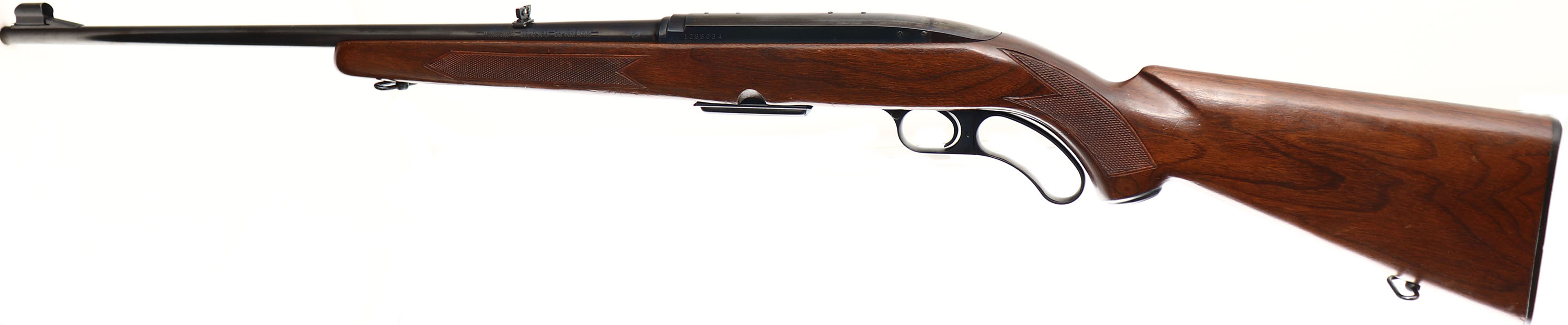 Winchester Model 88, CAL: 243 WIN, MFG: 1962, SN: 128803A, Lever Action Rifle, 22'' barrel. Pre-64. The original checkered & capped pistol grip wood stock is excellent. It displays some minor handling marks to the excellent original finish, which is only thinning a bit at the front of the pistol grip. The original metal blue finish rates 98% on barrel, 95% on receiver. Bore is excellent. The barrel holds a flip-up rear sight & a hooded ramp front sight. Stock carries a the original checkered buttplate. Factory sling swivels. Excellent overall & very collectible in this condition as a pre-64 variation. FFL or C&R Req - Value: 1500 to 2500