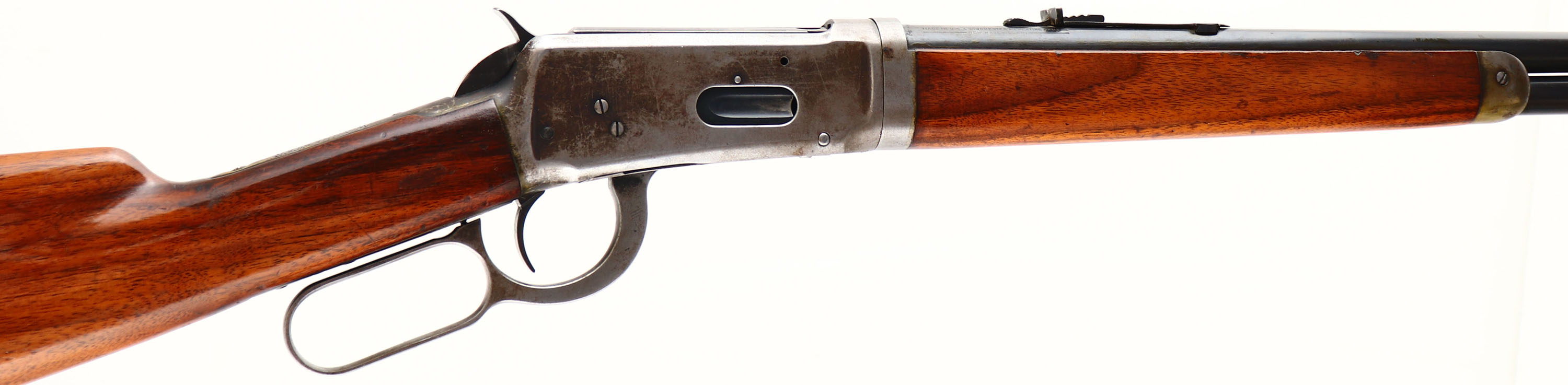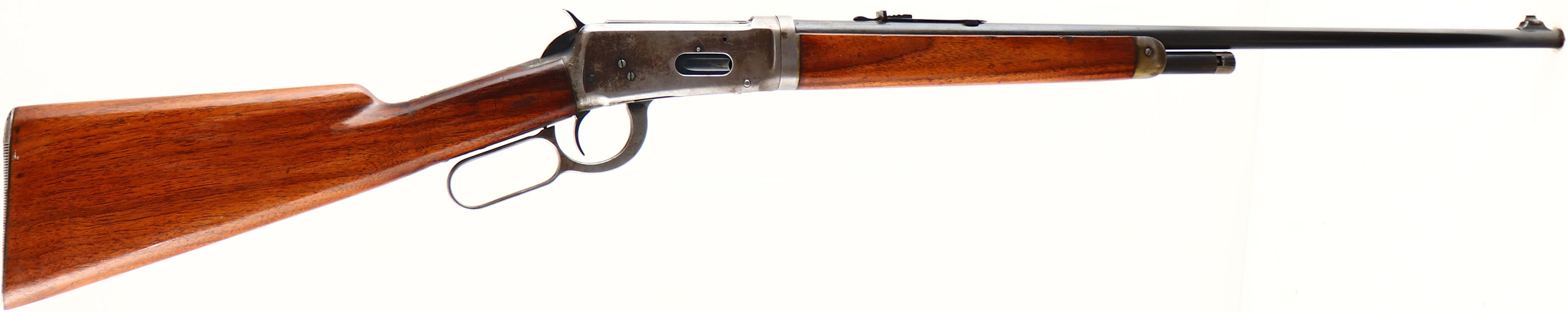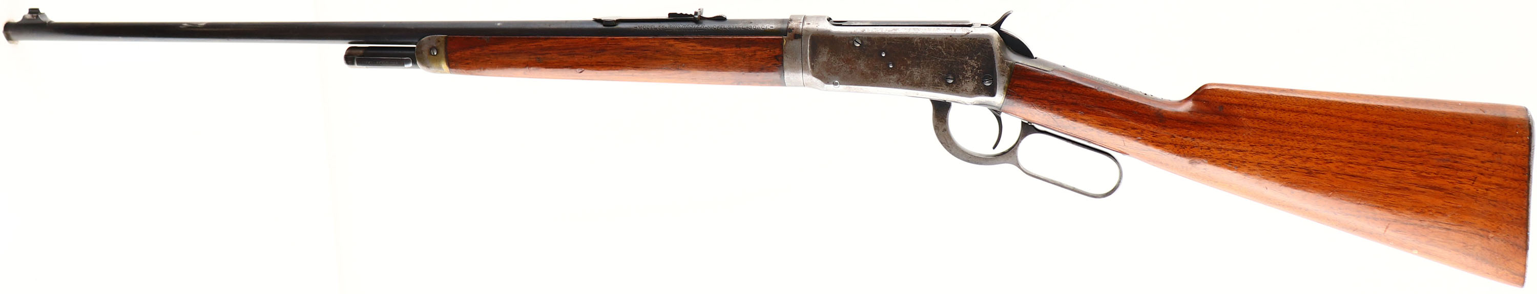 Winchester, Model 55 TAKE-DOWN, marked 30 WCF, MFG. 1926, SN: 3527, Lever Action Take-down Rifle, 24 1/4'' Tapered round barrel, 1/2 mag., The original walnut stocks are excellent & solid. The original finish has worn & thinned, with an added coat of finish, that has spder web crinckled. There are minor scuffs, scrapes & contusions. Added wood finish found on receiver, barrel & buttplate. The original metal blue finish rates 70% on barrel & mag, while the receiver has worn almost fully gun metal gray. Bore is very good, with some light roughness. The barrel carries an adjustable rear & small blade front sights, Shotgun style metal buttplate. This 3rd year of production 55 rifle is one only 20,500 model 55 rifles manufactured. FFL or C&R Req. - Value: 800 to 1200