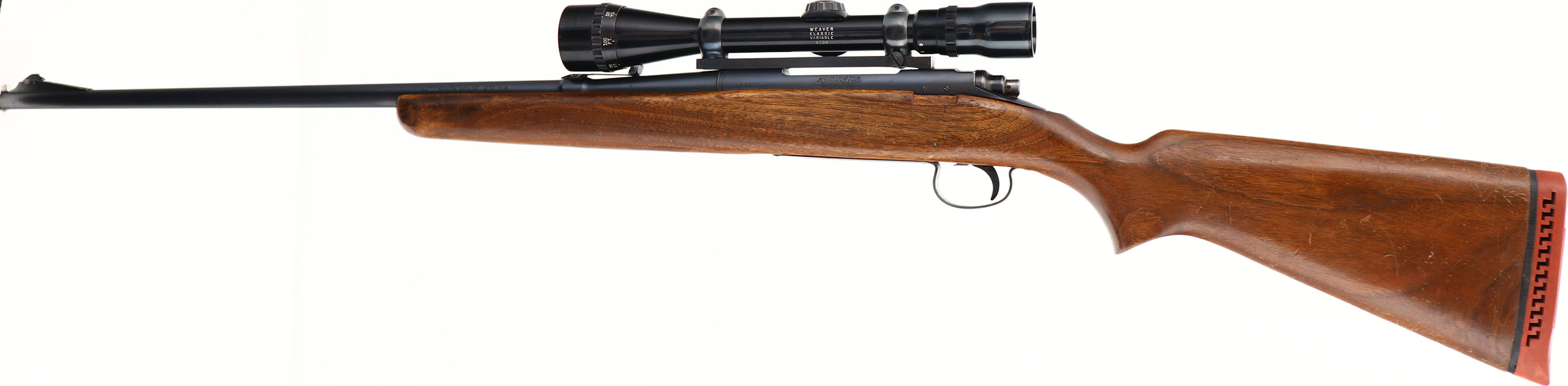 Remington Model 721, CAL: 270 WIN, MFG: 1948-61, SN: 48750, Bolt Action Rifle, 24'' barrel. The flat pistol grip wood stock is very good, with numerous small handling marks, scratches & contusions to the original finish, especially to the belly of the stock. The original metal blue finish rates 90% overall, with additional wear to floorplate. Bore is excellent. The rifle carries a Weaver Classic Variable 75 ft to 1000yd scope, mounted on Buehler block & rings. The barrel has a dovetailed rear & ramped front sight. Buttstock carries a J.C. Higgins ventilated recoil pad. A very nice utilitarian hunting rifle in a popular deer hunting caliber. FFL or C&R Req. - Value: 500 to 1000