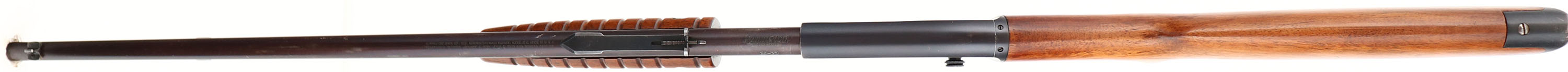 Remington, Model 25, marked 25-20, MFG: 1923-36 SN: 29456, Pump Action Take-down Rifle, 24'' round barrel. The original flat pistol grip wood stocks are excellent & solid. The original finish is excellent, with use thinning the finish along the sides of the forend. There is a tightly glue repaired hairline crack at the tip of the forend & few finish level light scratches or handling marks. The original factory metal blue finish has 90% coverage on receiver, 80% on the mag tube & barrel, with the barrel finish fully toning to a thinning plum tone. Bore is excellent. Barrel carries an adjustable rear & standard front sights. Remington stamped crescent metal buttplate. These smaller caliber & light weight pumps were popular for small game & varmint hunting & most saw heavy use. With less than 32,000 model 25 rifles produced, this last year example is fairly rare. This is a high & original collectors condition rifle. FFL or C&R Req. - Value: 1250 to 2000