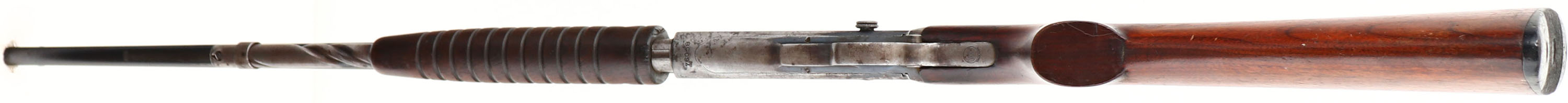 Remington, Model 14, (PARTS RIFLE), .30 REM Cal., MFG. 1920, SN:76058, Pump Auction Take-down Rifle. 22'' round barrel. The pistol grip stock appears to be a model 141 replacement & is good & solid. There are however, two 1.5'' stress cracks at the right side of wrist. The original forearm is very good. There are small handling marks & light contusions. The original metal finish has worn mostly gray, with some remains of original blue & a thin brown patina. The left side of the receiver has three open holes, likely from a previous scope mounting, needs filler screws. Bore is good. Barrel carries a ramp front sight, with an open dovetail & extra slot from the original rear wheel sight missing. Stock carries a replaced plastic buttplate. Action is frozen, with bolt stuck to the rear of the receiver. Don't know why, but there maybe some additional missing non-visible internal parts which might restrict normal function once action is unstuck. Therefore, we recommend this rifle be examined & repaired by a gunsmith before attempting to operate. Thus, this rifle is being sold as a parts rifle & is therefore being sold ''AS-IS'', with NO RETURNS! FFL or C&R Req. - Value: 150 to 300