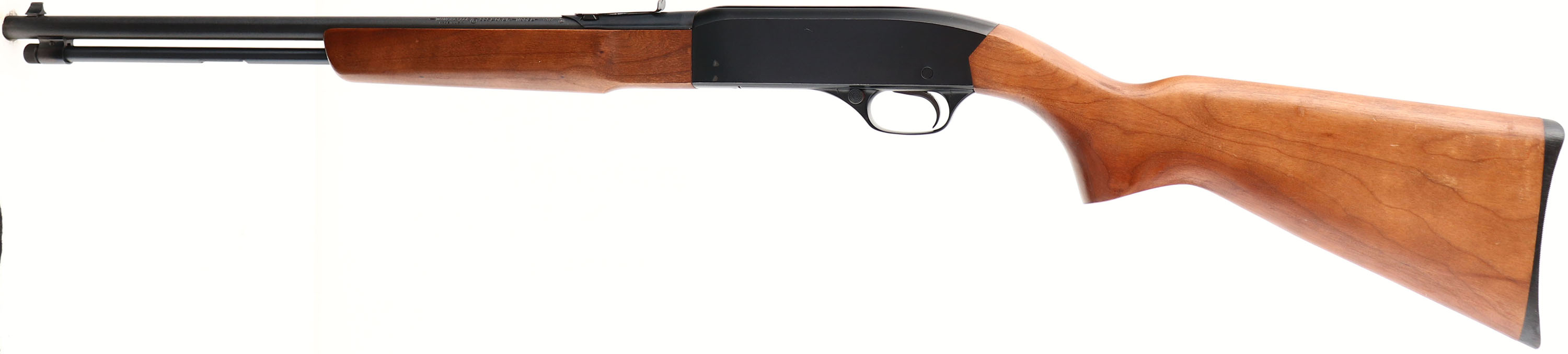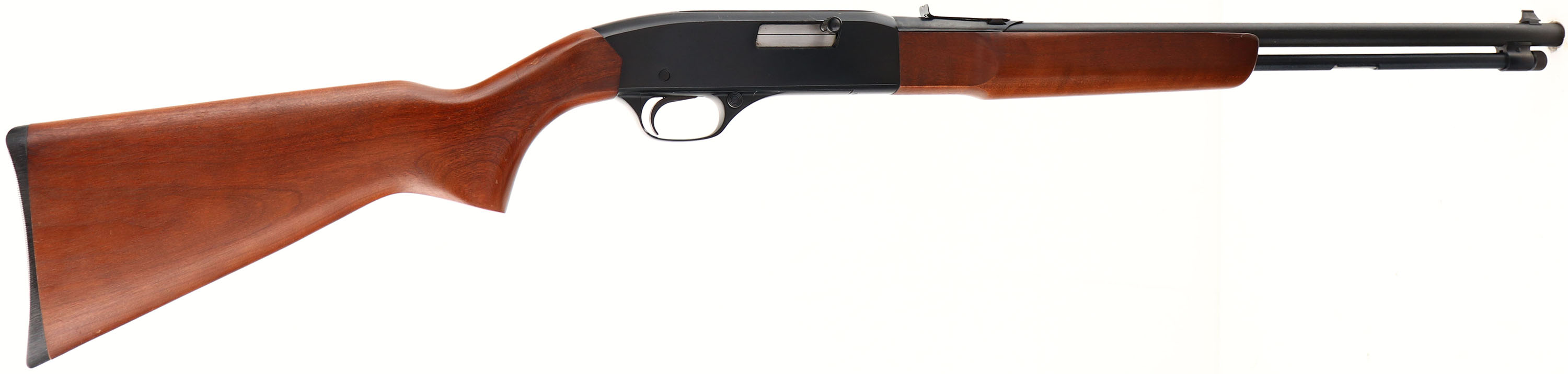 Winchester, Model 190, Marked .22 S.L.& LR. RIFLE Cal., MFG. 1963-74, SN: 734664, Tubular Mag. Semi-Auto Rifle, 21'' round barrel. Grooved receiver. Original factory wood is excellent, with excellent original finish. There are very few tiny handling marks. The original metal blue finishes rates 95% overall. Bore is excellent. Factory front & rear sights. Factory plastic buttplate. An excellent original condition semi-auto .22. FFL or C&R Req. - Value: 300 to 500