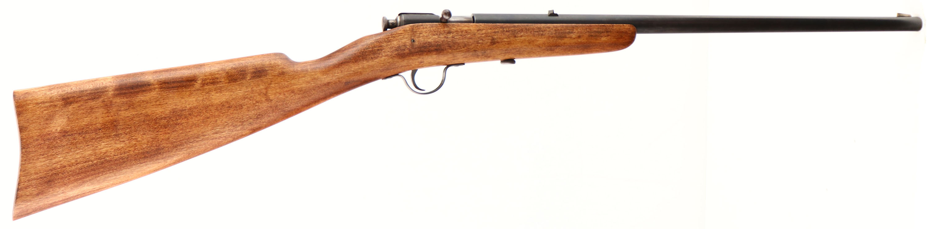 Winchester, Model 58, CAL: 22 S,L,LR, MFG: 1928-31, SN: NONE, Bolt Action Rifle, 18'' barrel. This is a fairly rare rifle as only 38,992 were produced during the four years of production. The straight grip wood stock is an excellent replacement, with virtually no handling marks to the finish. The metal blue finish has been refinished, with 85% coverage. Bore is excellent. Factory fixed sights. Produced without a buttplate. FFL or C&R Req. - Value: 200 to 400